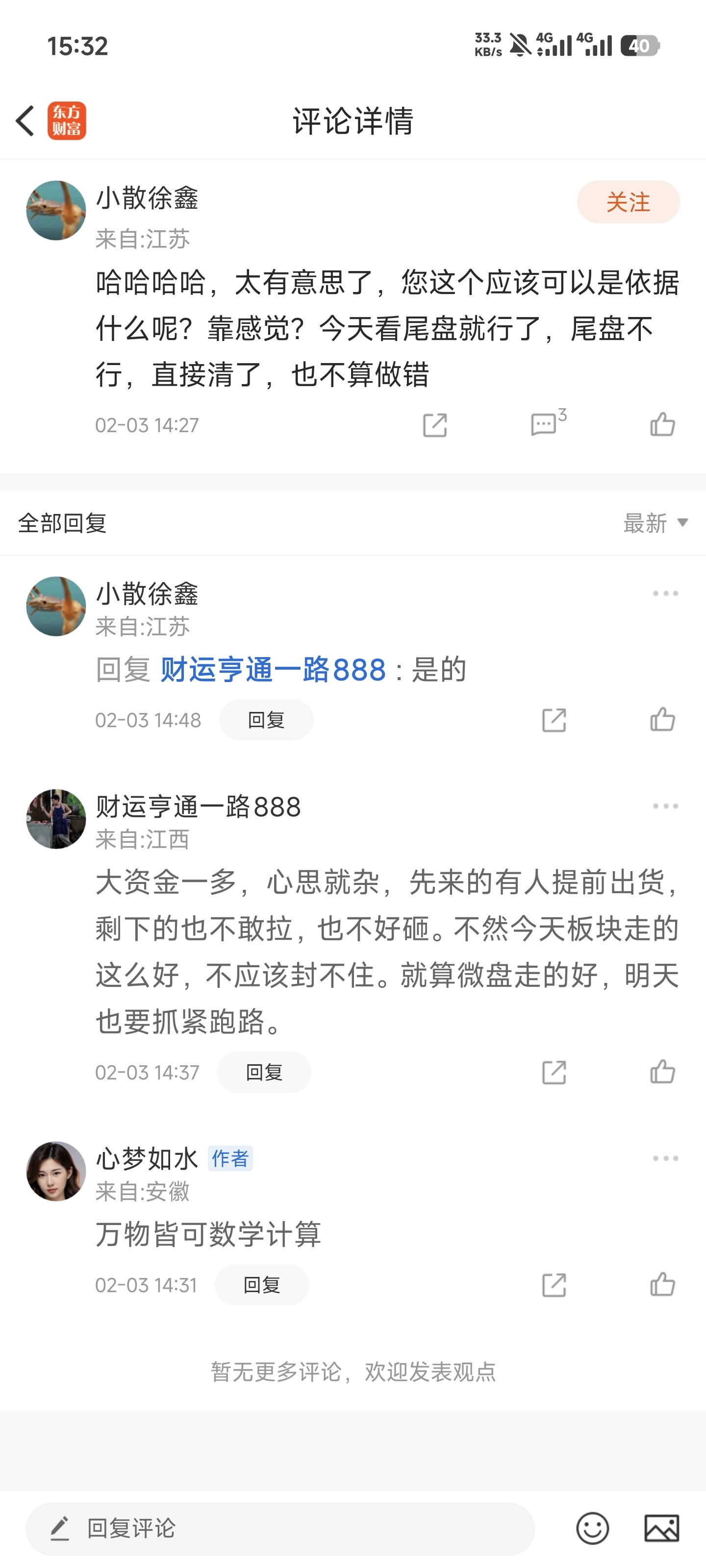 温馨提示: 1.根据《证券法》规定,禁止编造、传播虚假信息或者误导性信息,扰乱证券市场;2.用户在本社区发表的所有资料、言论等仅代表个人观点,与本网站立场无关,不对您构成任何投资建议。用户应基于自己的独立判断,自行决定证券投资并承担相应风险。《东方财富社区管理规定》