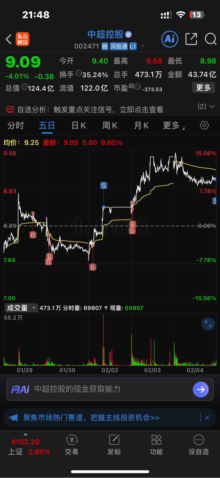 $中超控股(SZ002471)$ 尾盘走了,不会卖飞了吧