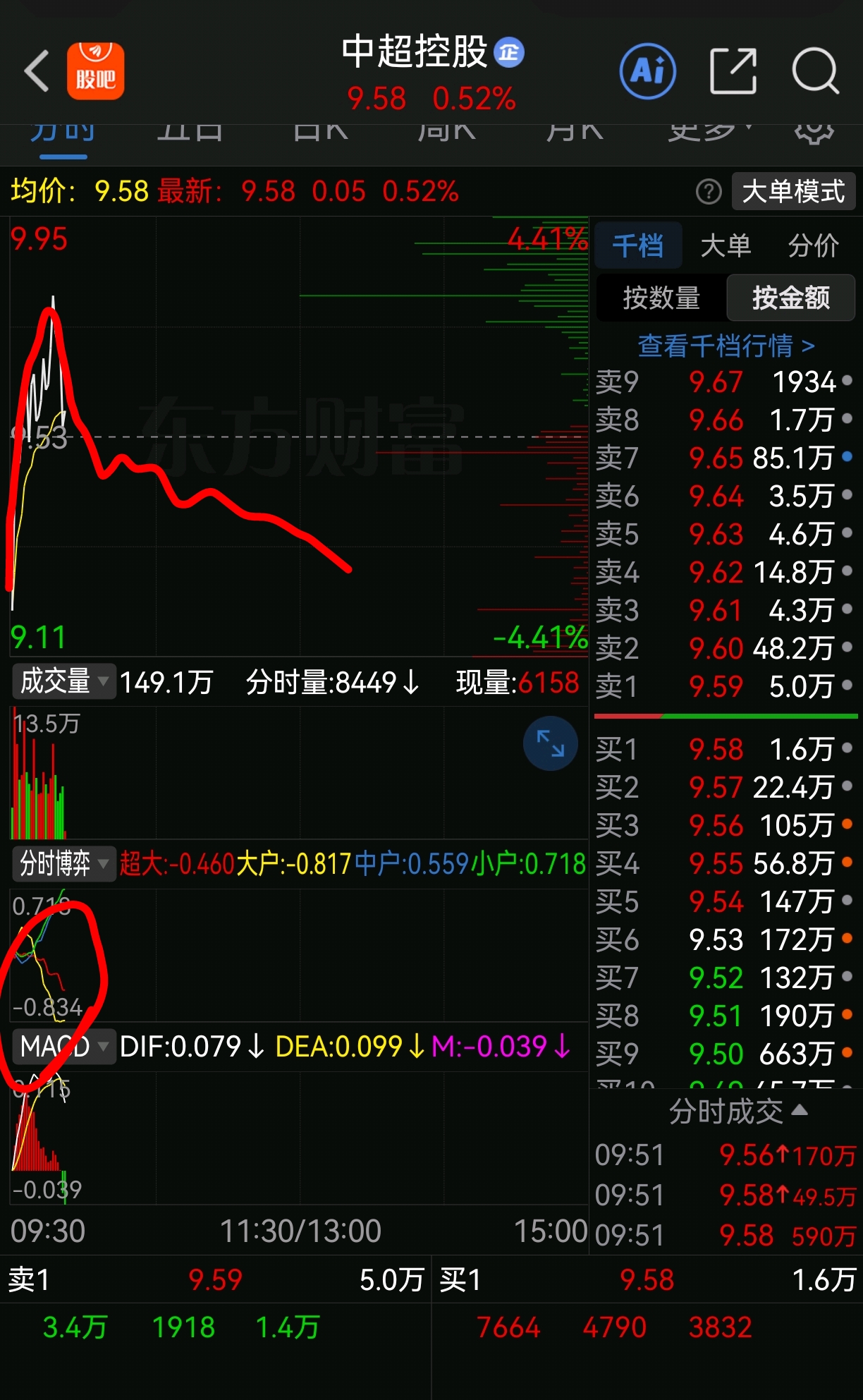 $中超控股(SZ002471)$ 很明显的高位出货,大资金全是净卖出的,拉升根本没有量能跟上,只能冲高回落走A杀,现在商业航天概念是上面明确打压的,新高票不可能有行情