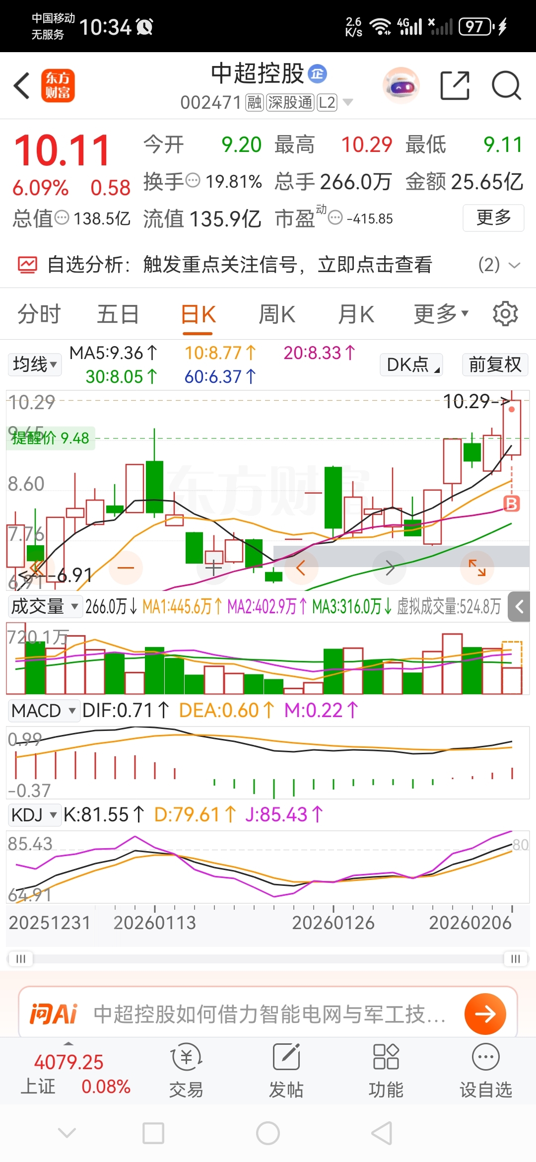$中超控股(SZ002471)$ 追高了