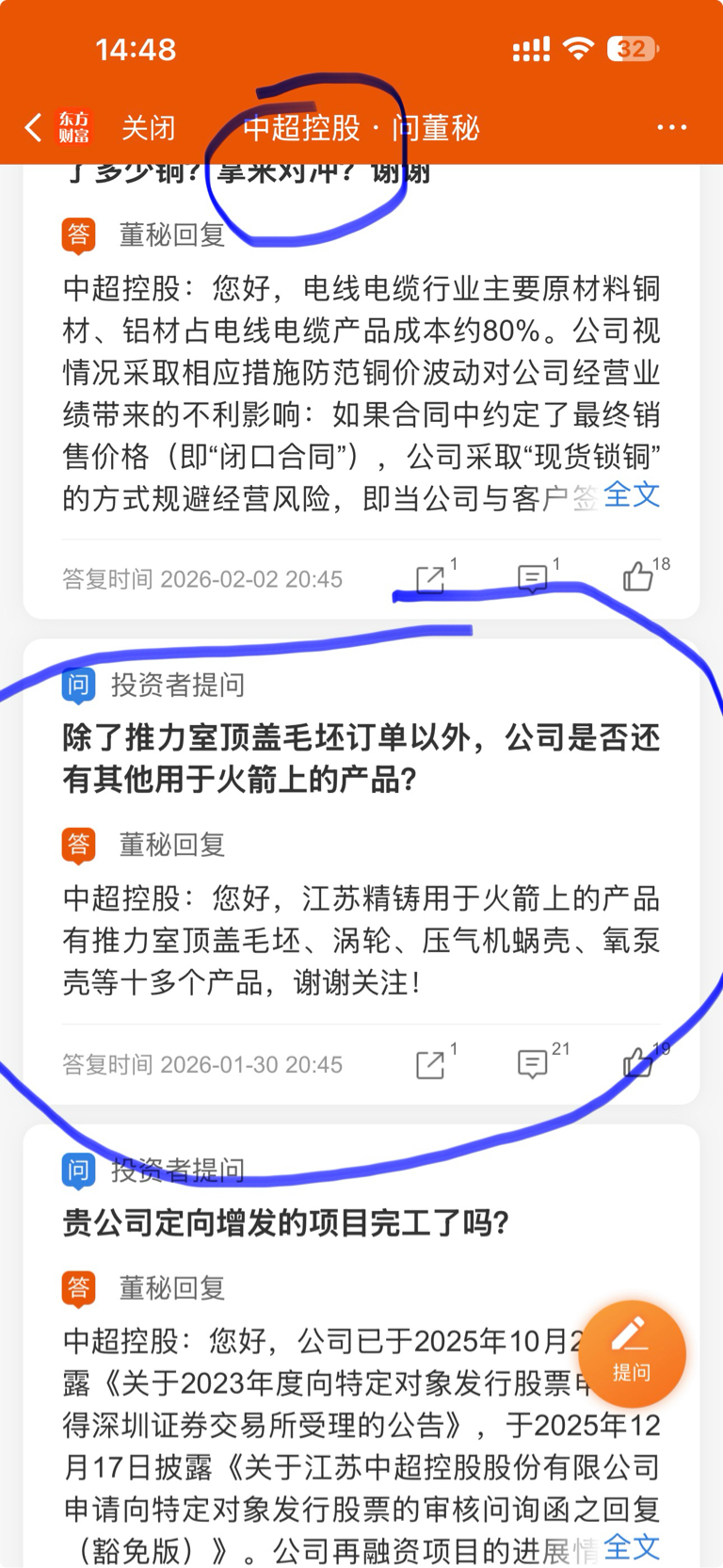 如图,投资互动清清楚楚,写的有十几个火箭产品,结果到了媒体里面变成了没有火箭业务