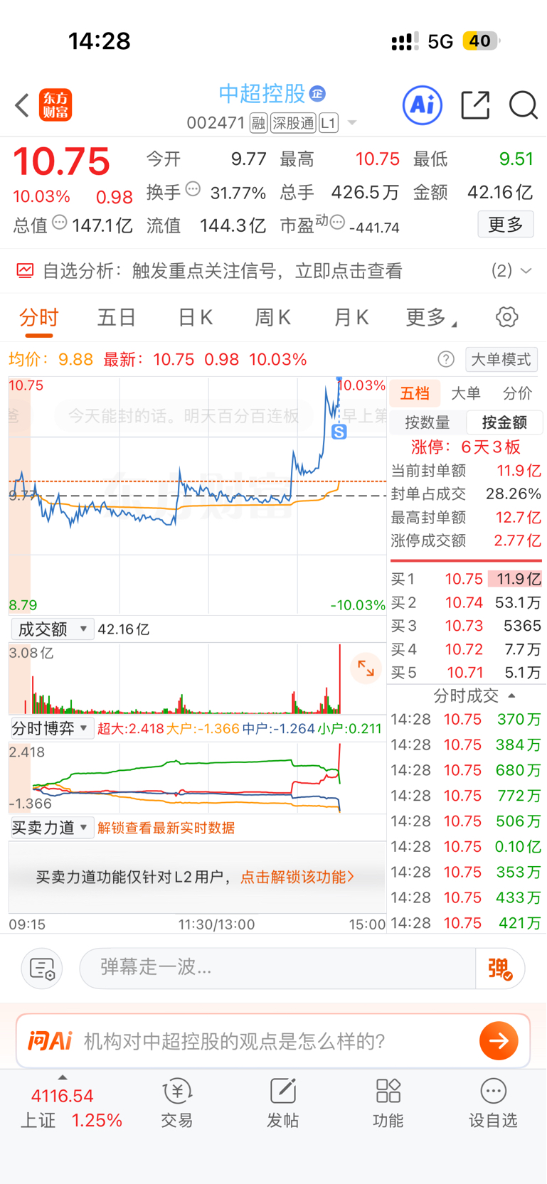 $中超控股(SZ002471)$ 大家有仓位的,留下发财。祝大家接下来四天吃四个板。