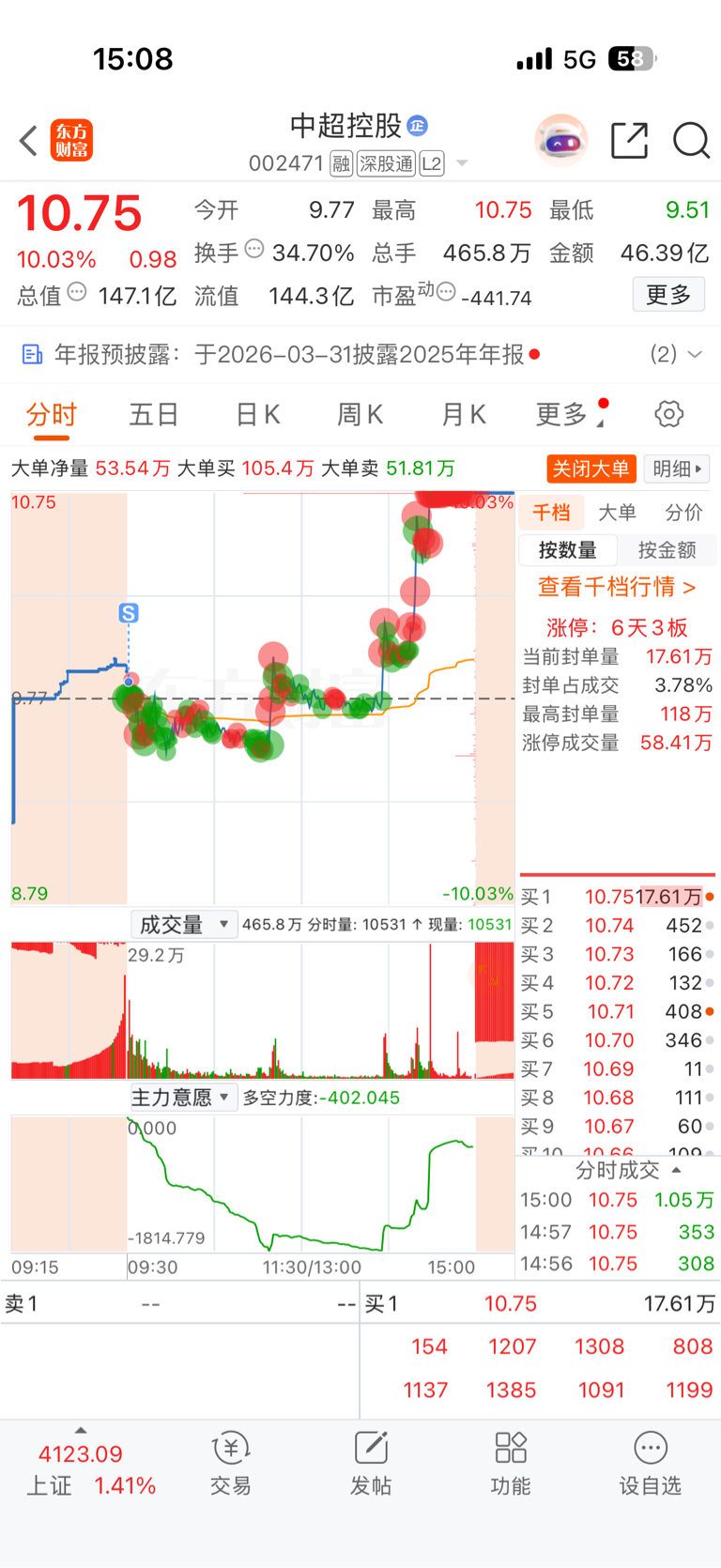 $中超控股(SZ002471)$ T M就差我这三瓜两枣