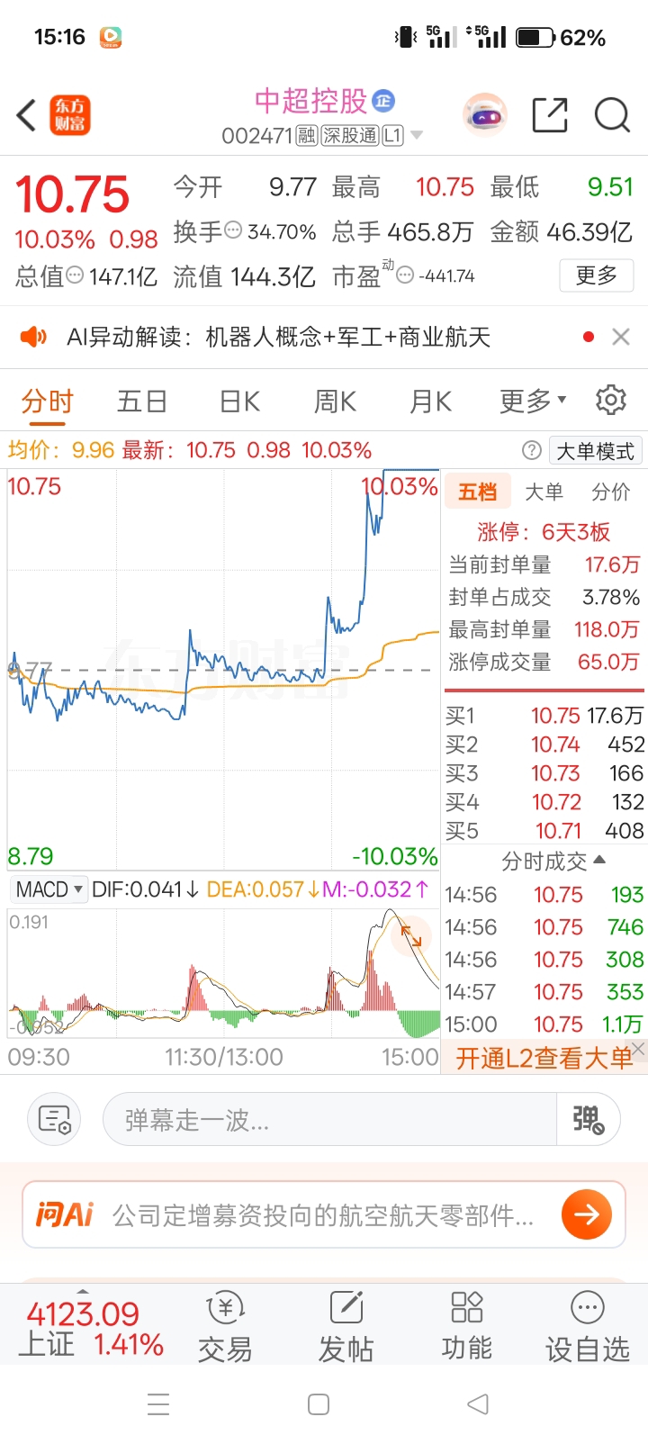 $中超控股(SZ002471)$ 这个市场,没有神仙,也没有谁能做到百分百,只有吃到肉,那些没闹子的太多了,大家无需理会,才是王道,今天上车超人的,目前已经封板,继续拿好,明天吃肉