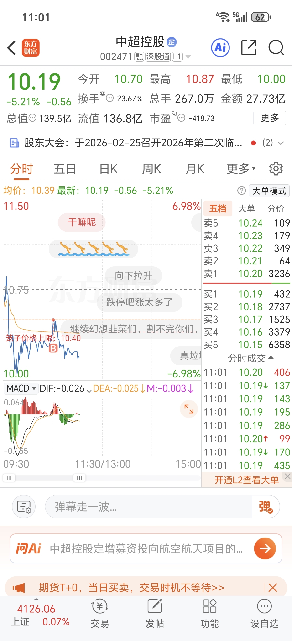$中超控股(SZ002471)$ 我在山顶上。买一次跌一次。