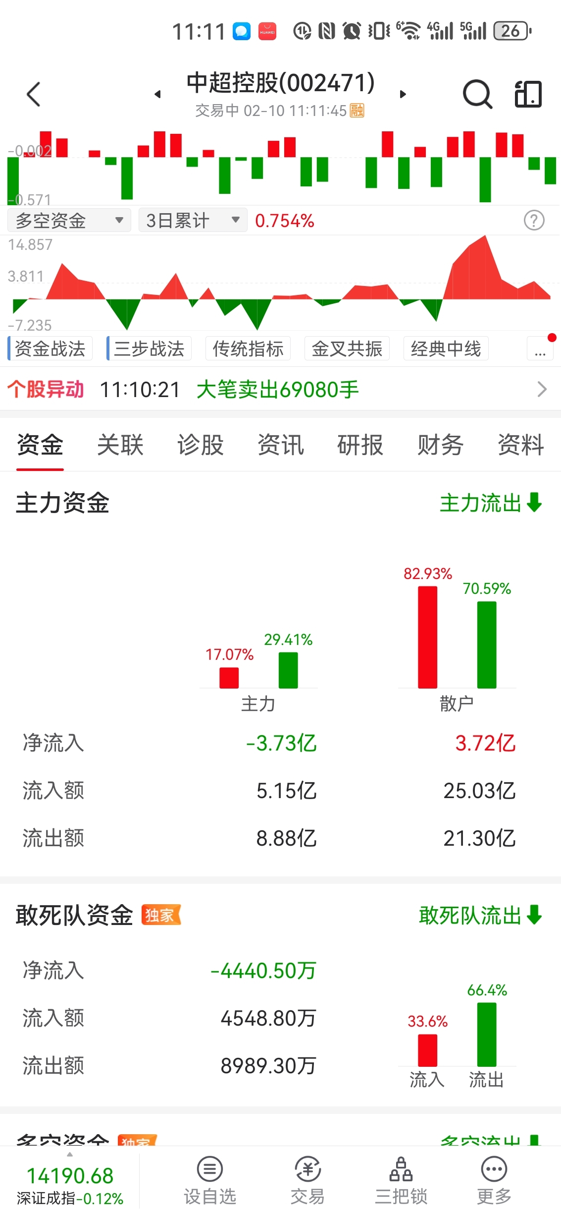 主力流出4个亿了