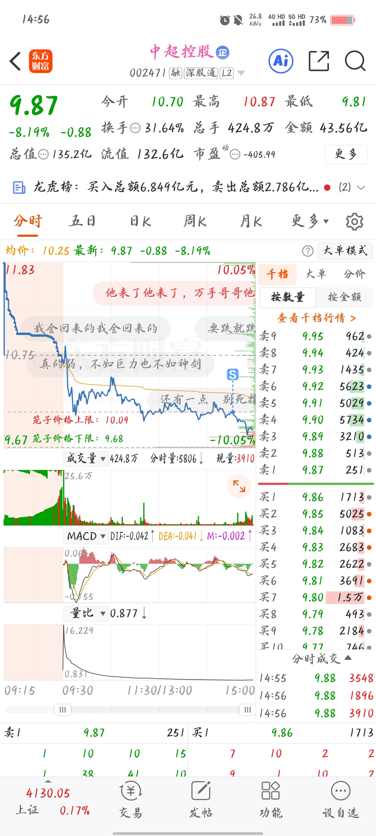 $中超控股(SZ002471)$ 亏麻了,涨停第二天低开自己跑,第N次的教训