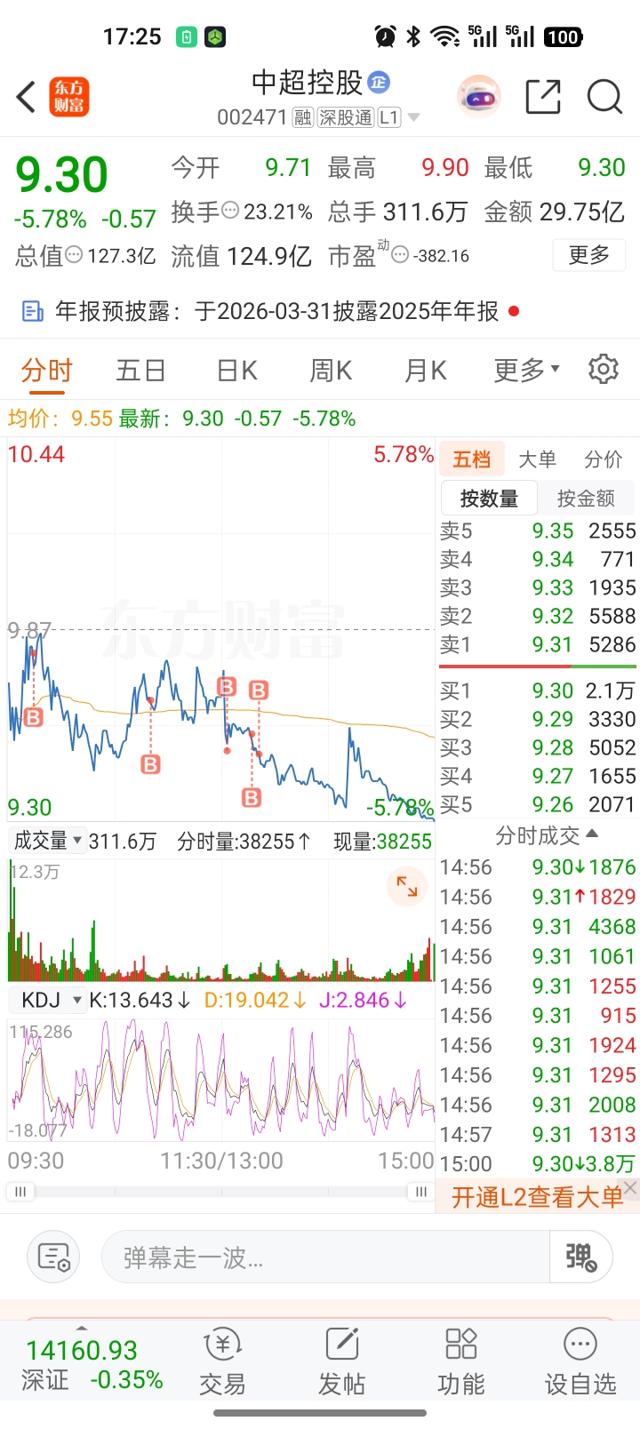 $中超控股(SZ002471)$ 打个底仓,看了一整天,最后亏本收盘