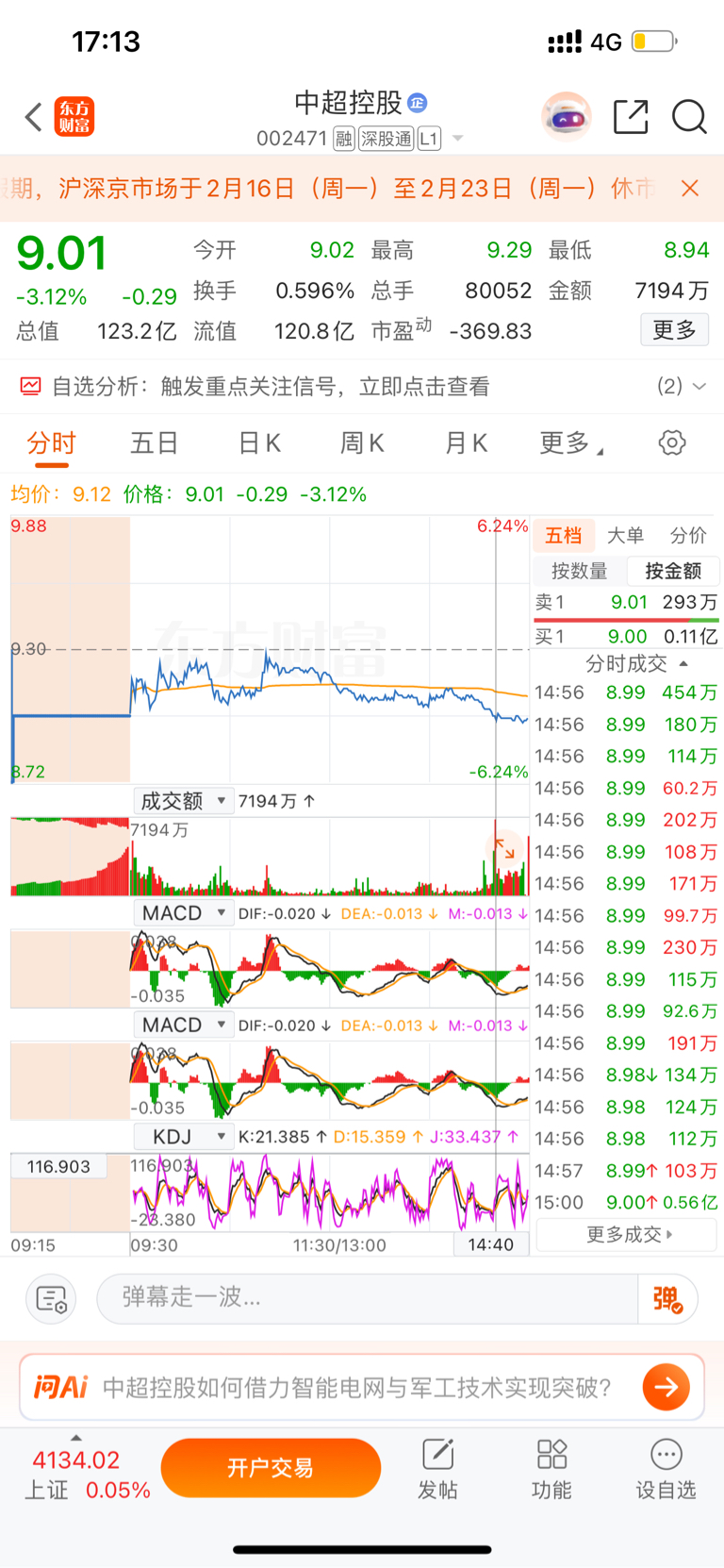 $中超控股(SZ002471)$ 有没有大佬给解释一下,最高这笔七千多万不应该是砸盘的吗,怎么是红柱呢?