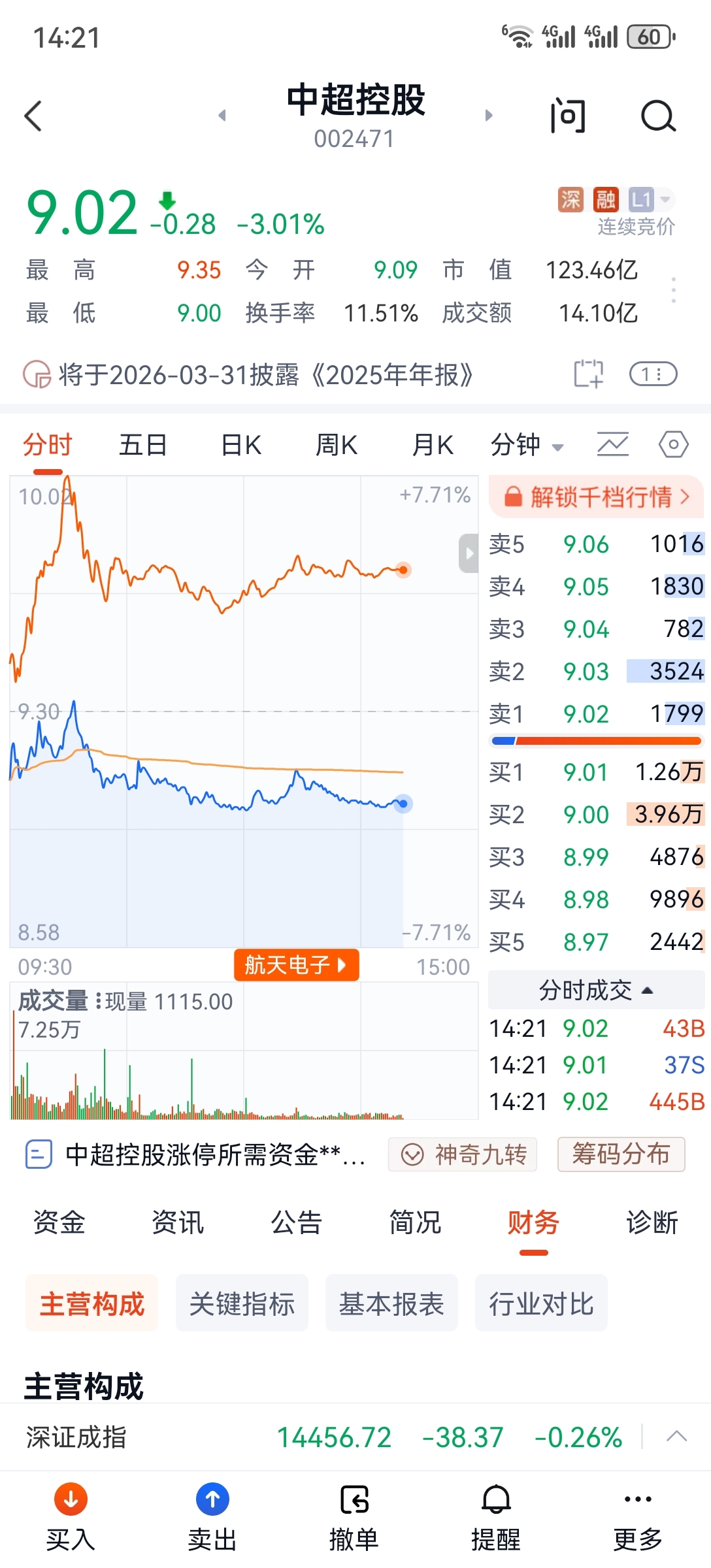 $中超控股(SZ002471)$ 和航天电子走势每天都是强相关。但是航天电子每天都在涨。