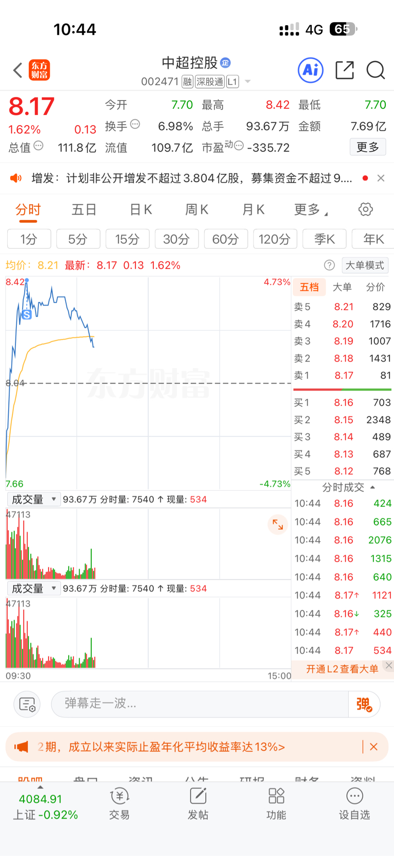 $中超控股(SZ002471)$ 跑的一定要快,