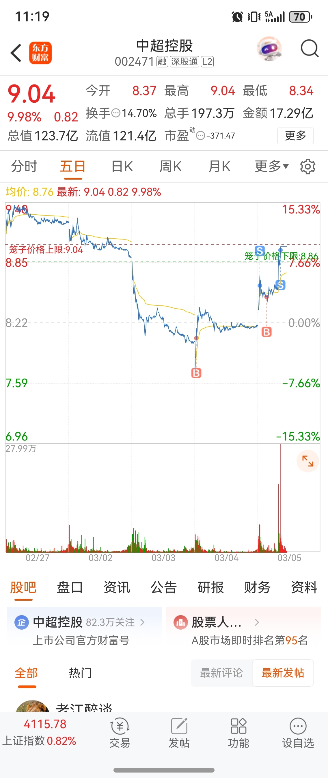 $中超控股(SZ002471)$ 后悔今天卖了一半,我觉得这次中超会涨几天。。