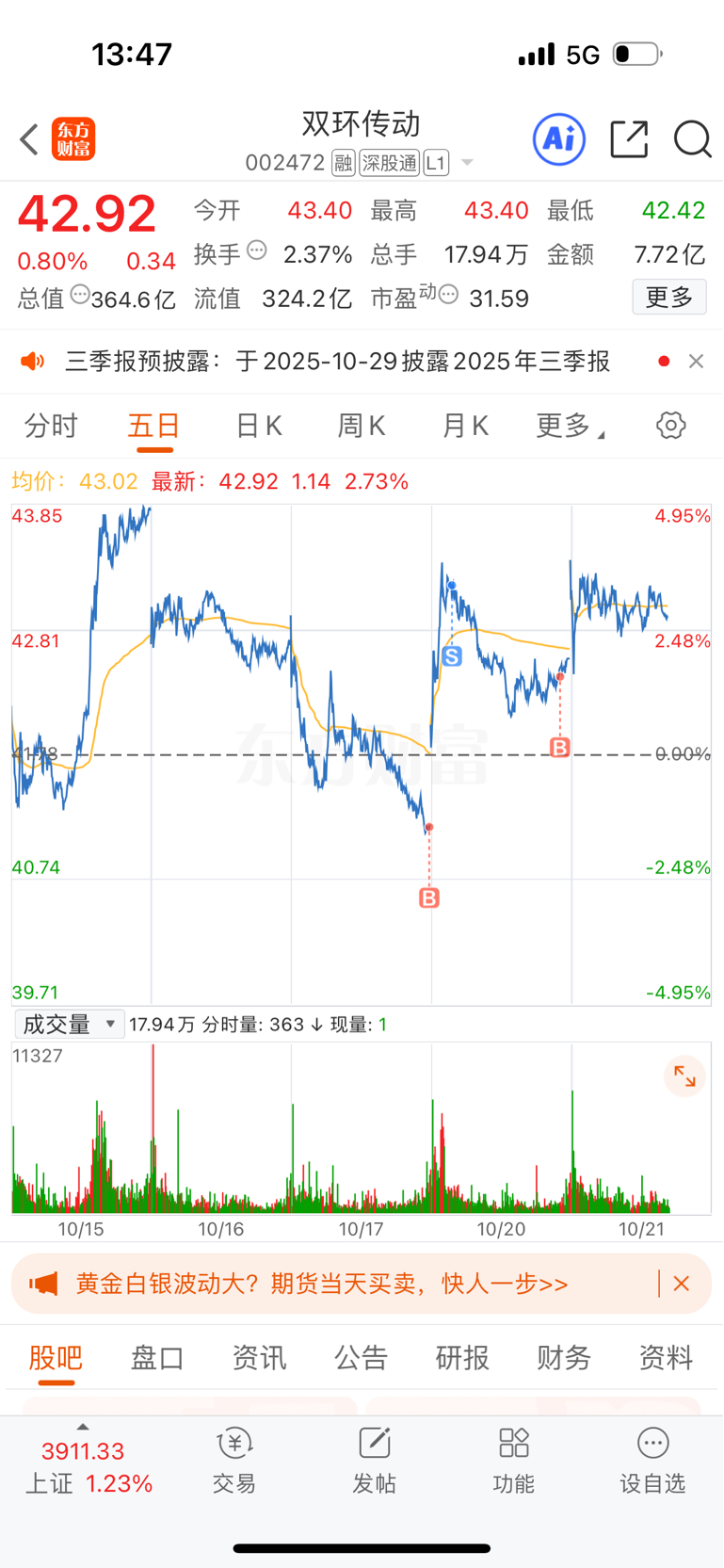 $双环传动(SZ002472)$ 今日考虑继续做 T,强支撑不破40.9就继续看短期波段压力位50。