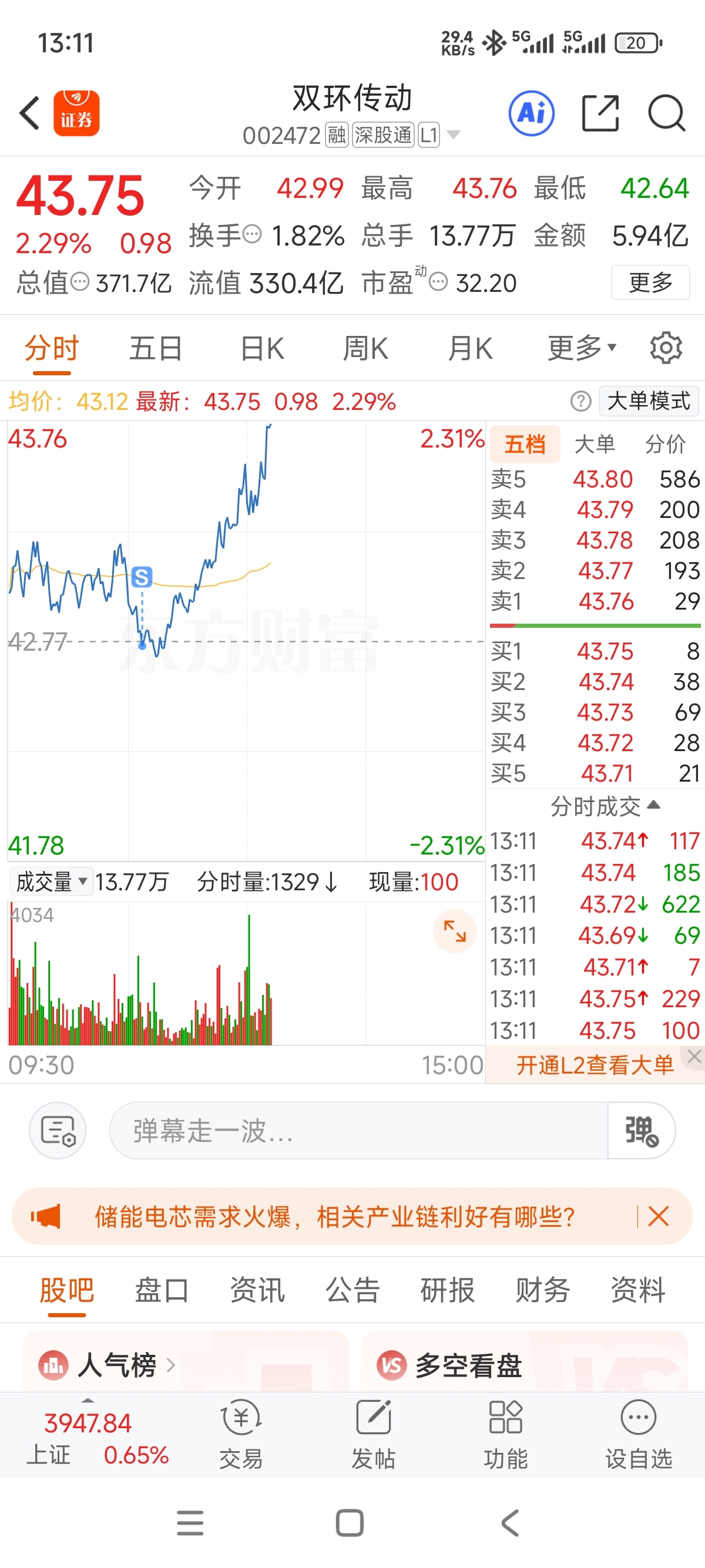 $双环传动(SZ002472)$ 我不卖,你不涨。
