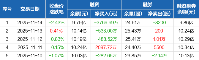 双环传动:连续3日融资净偿还累计4791.21万元(11-14)