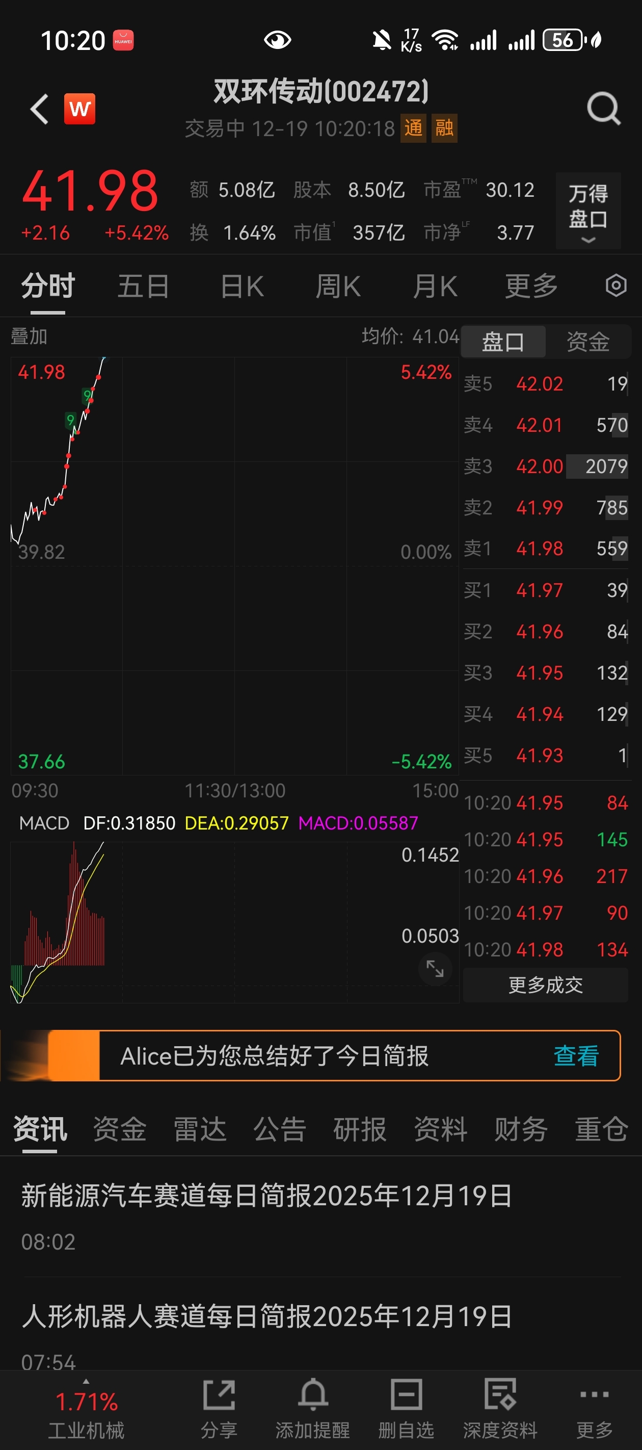 $双环传动(SZ002472)$ 42有狗 41.80出了很多