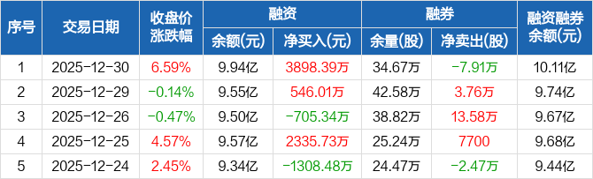 双环传动:融资净买入3898.39万元,融资余额9.94亿元(12-30)