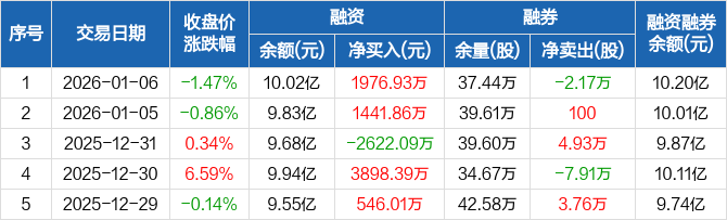 双环传动:融资净买入1976.93万元,融资余额10.02亿元(01-06)