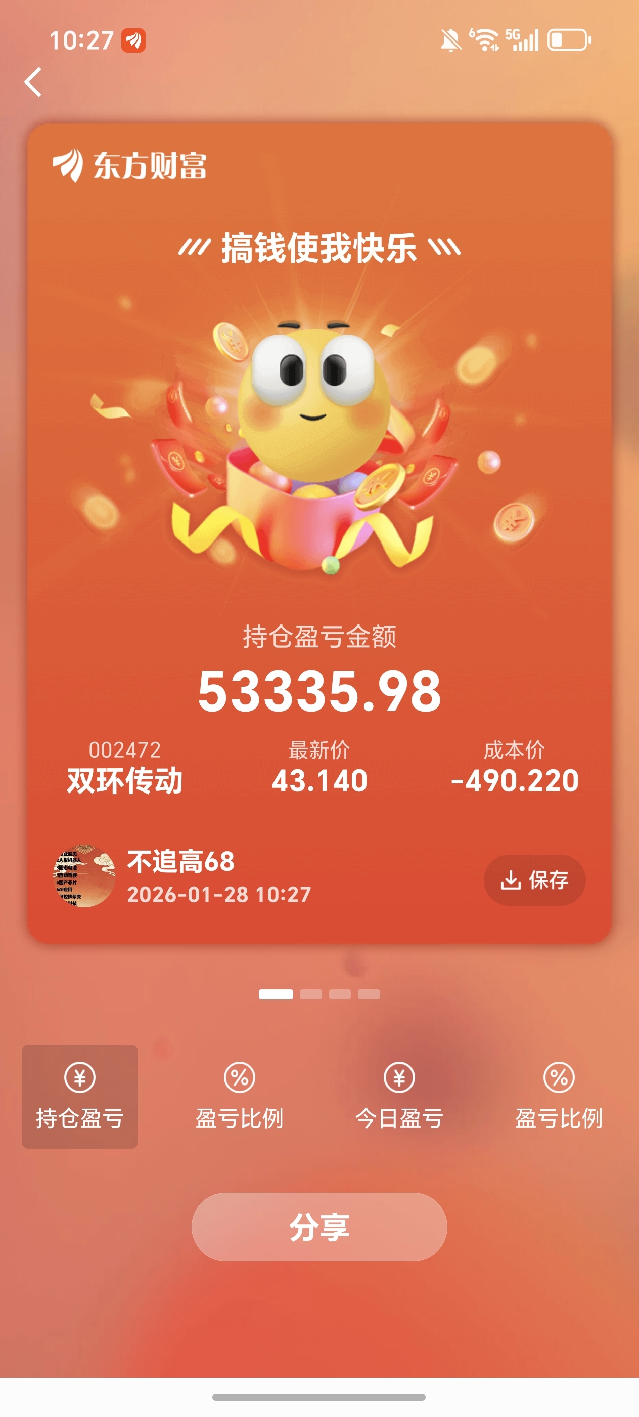 $双环传动(SZ002472)$ 利润回撤太多了,赚到就走,下次机器人我还是买中军三花了。
