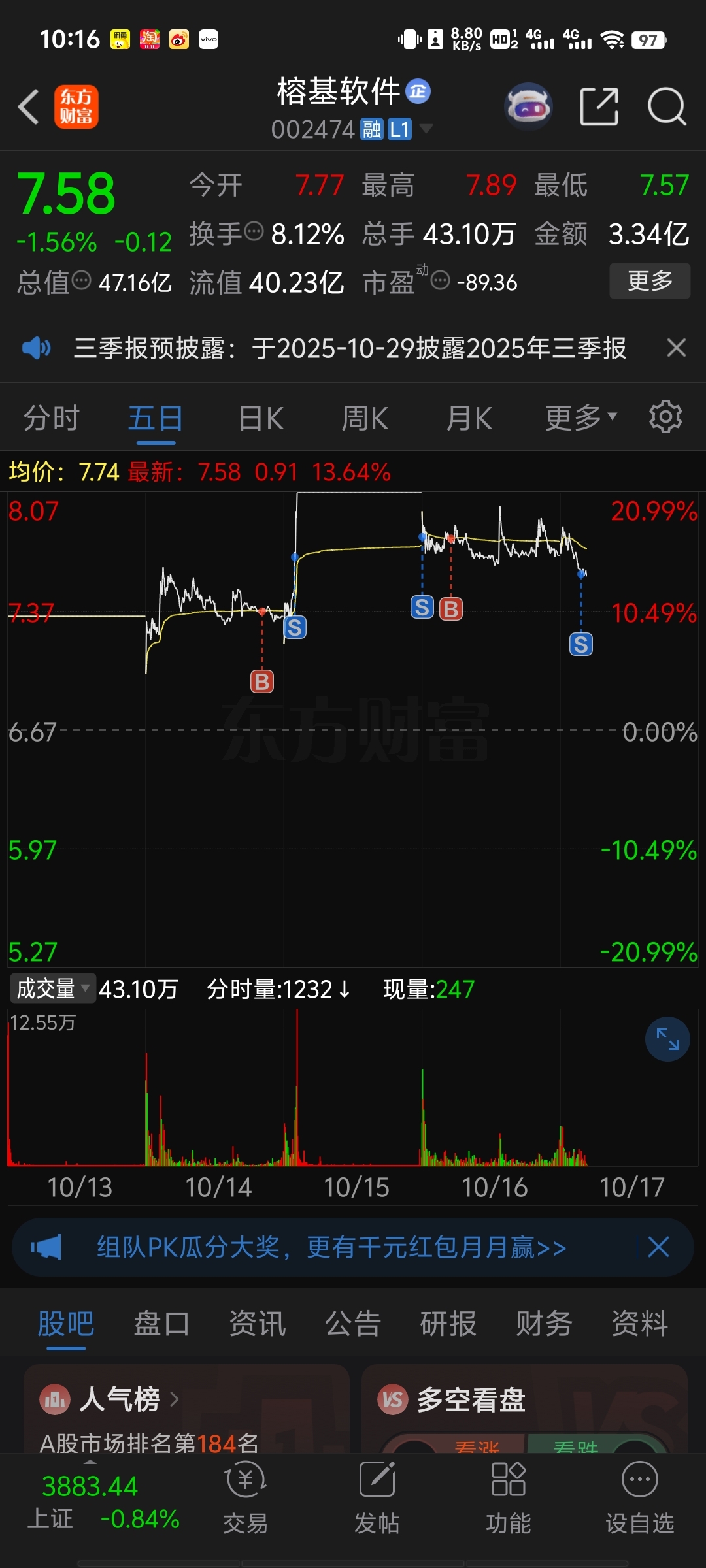 $榕基软件(SZ002474)$ 技术还是不行,这个位置落袋为安吧 大盘也不太行