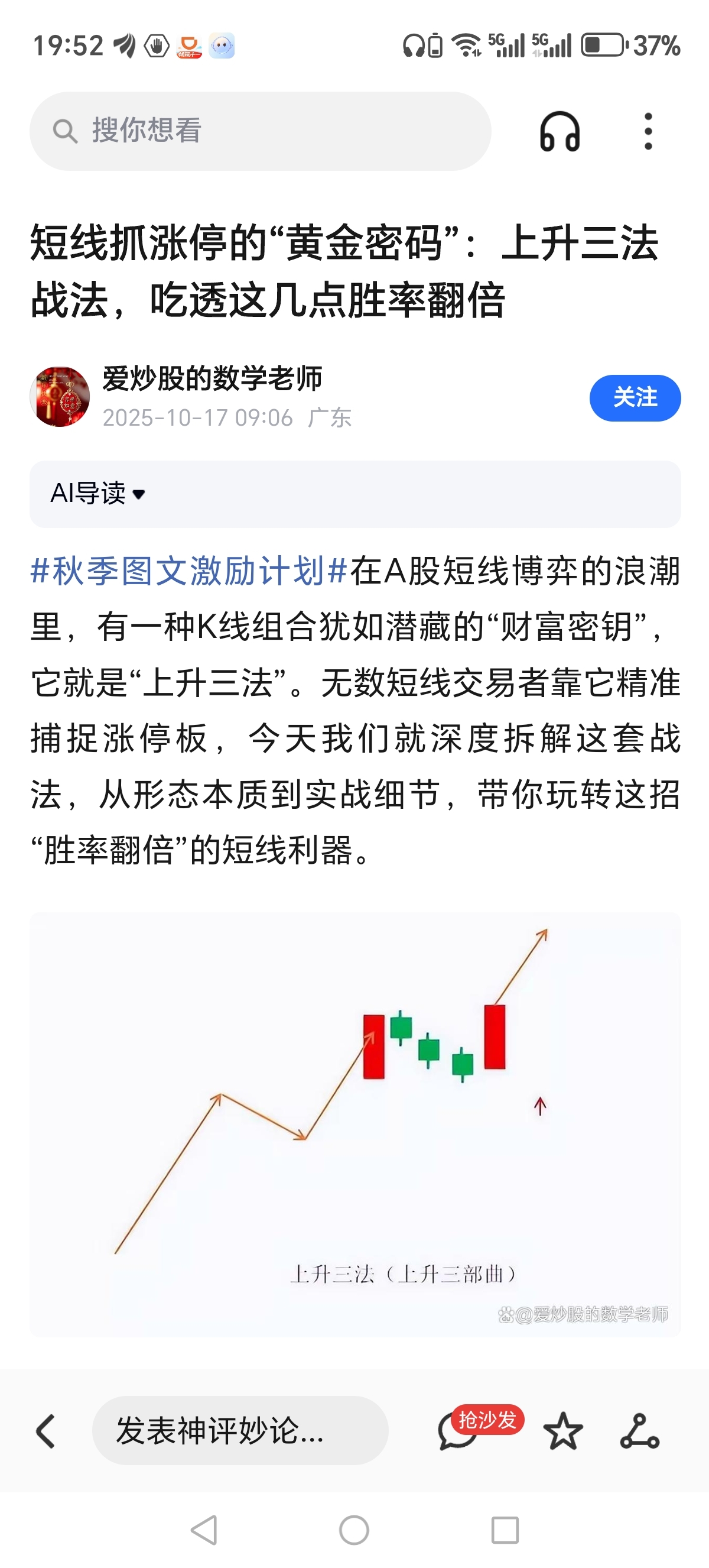 上升三法,你们可以网上查查。不是三只乌鸦哦,别被忽悠了。