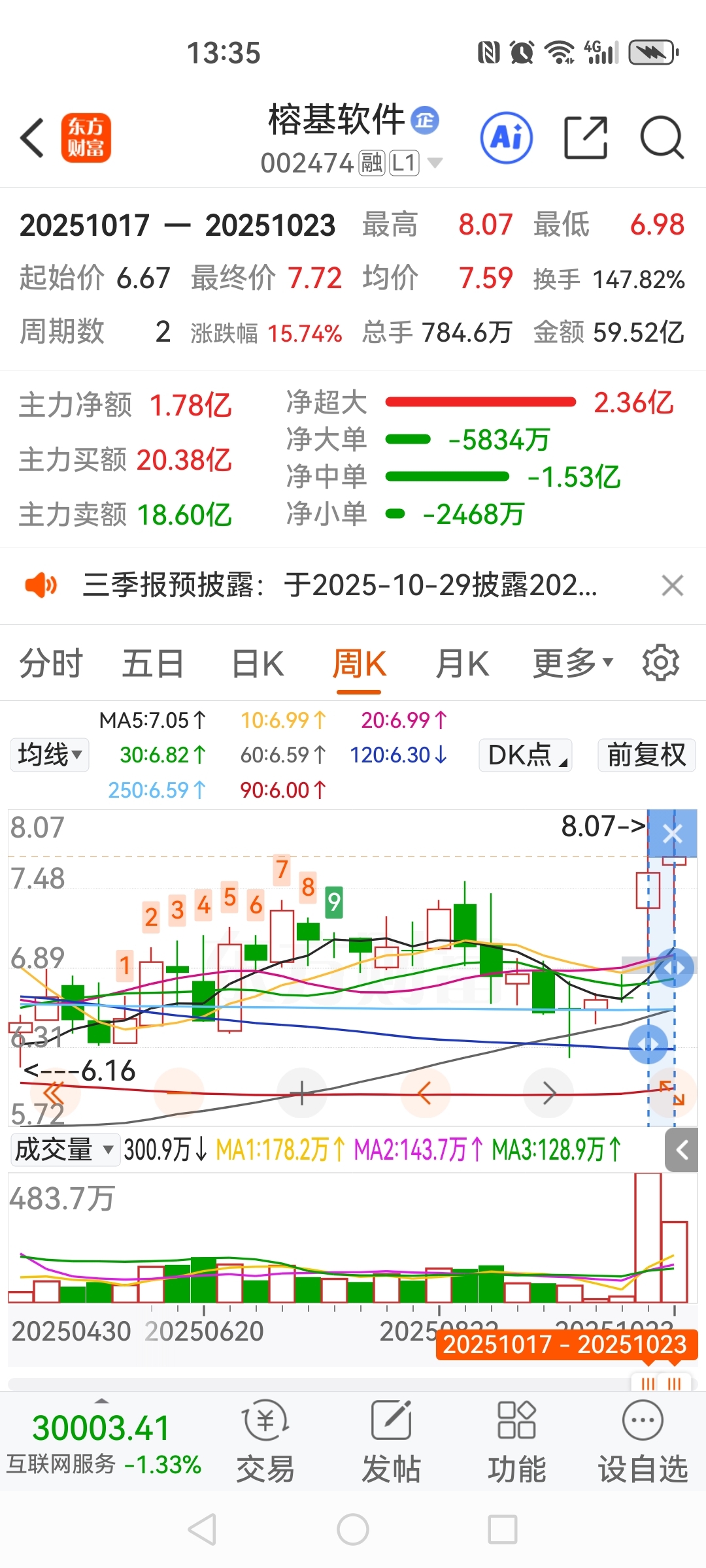 周线更是亮眼,均线多头排列,突破平台,趋势反转!10月29日三季报待披露,信创风口下值得期待