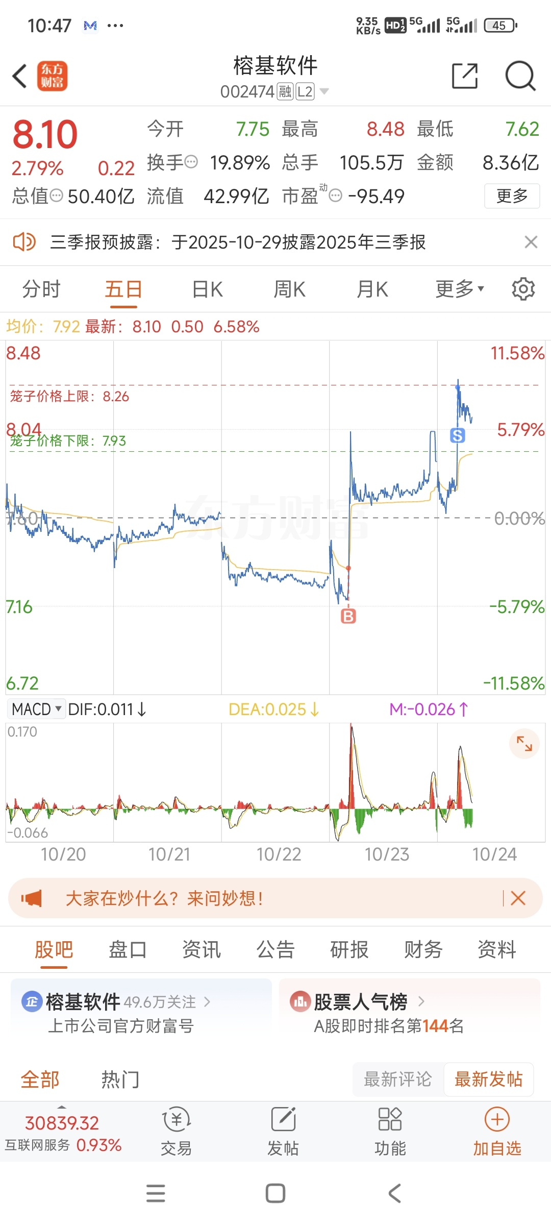 $榕基软件(SZ002474)$ 感谢主力,两天吃了11个点,虽然没卖在最高点(少赚了3个点),但也知足了。