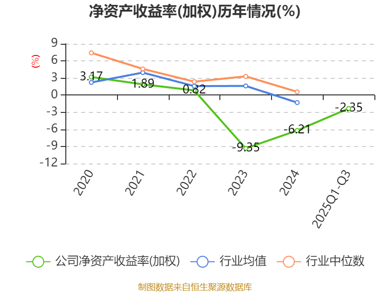盈利能力方面, 2025年前三季度公司加权平均净资产收益率为-2.35%,同比下降1.01个百分点。公司2025年前三季度投入资本回报率为-1.31%,较上年同期下降0.85个百分点。