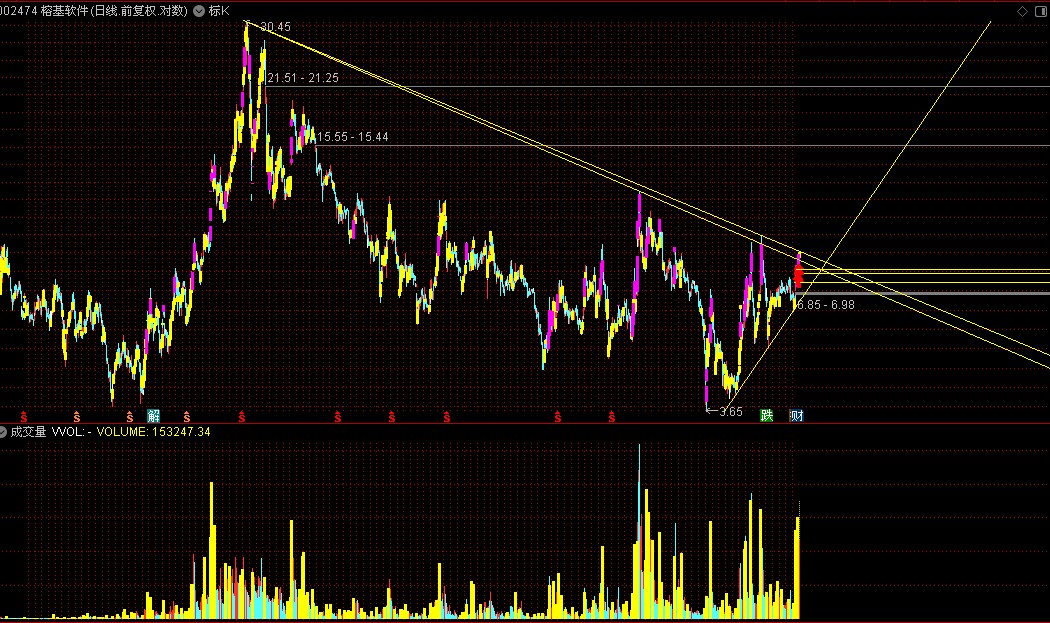 榕基软件从整体看,现在正处在压力线的下方,所以很纠结