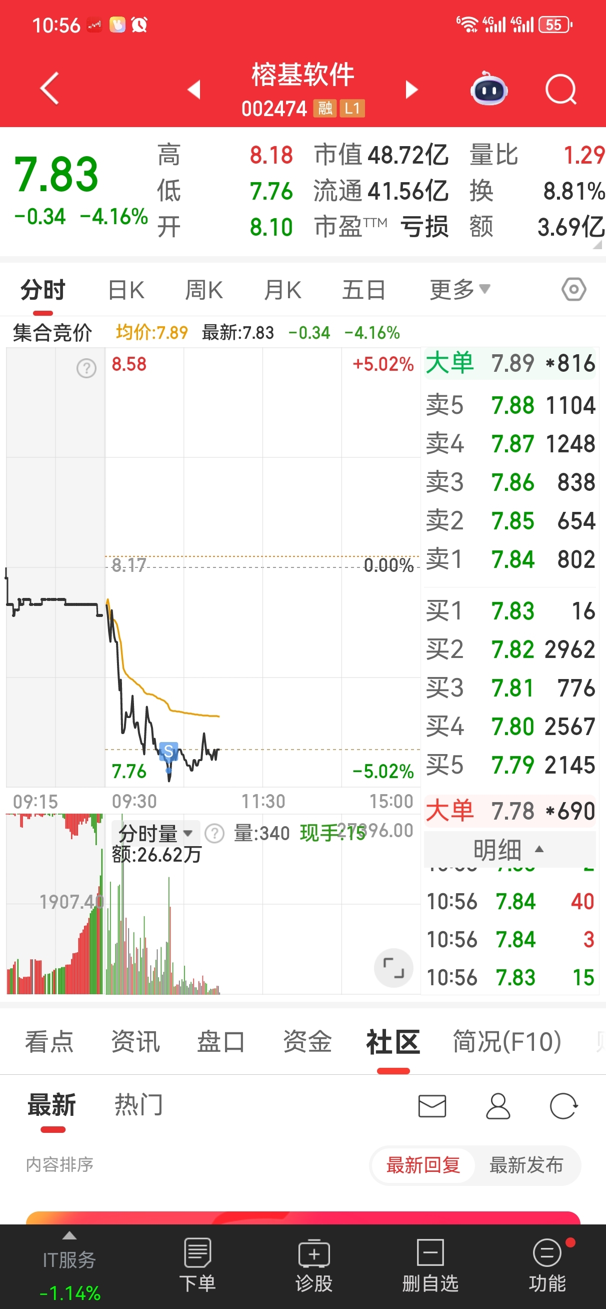 我认输了,被割了10个点,今天7.78割肉,空头太猛了,我等缩量企稳再进吧