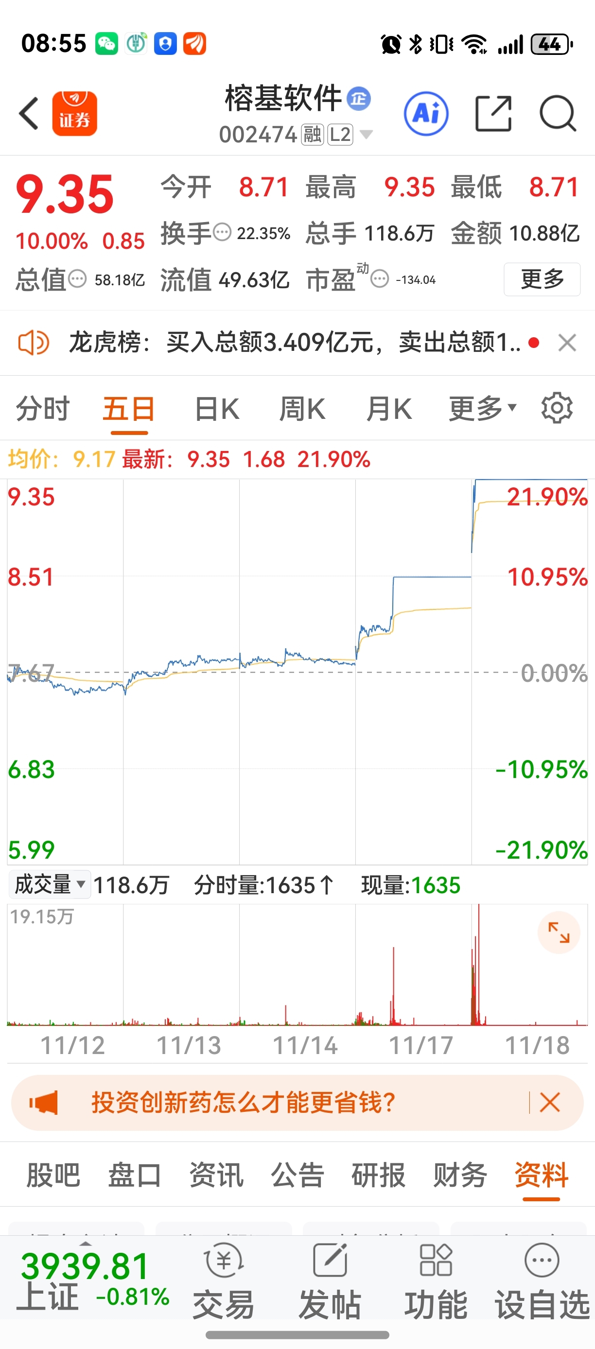 $榕基软件(SZ002474)$ 短期三板票,有的兄弟们明天可择机全部出来了!
