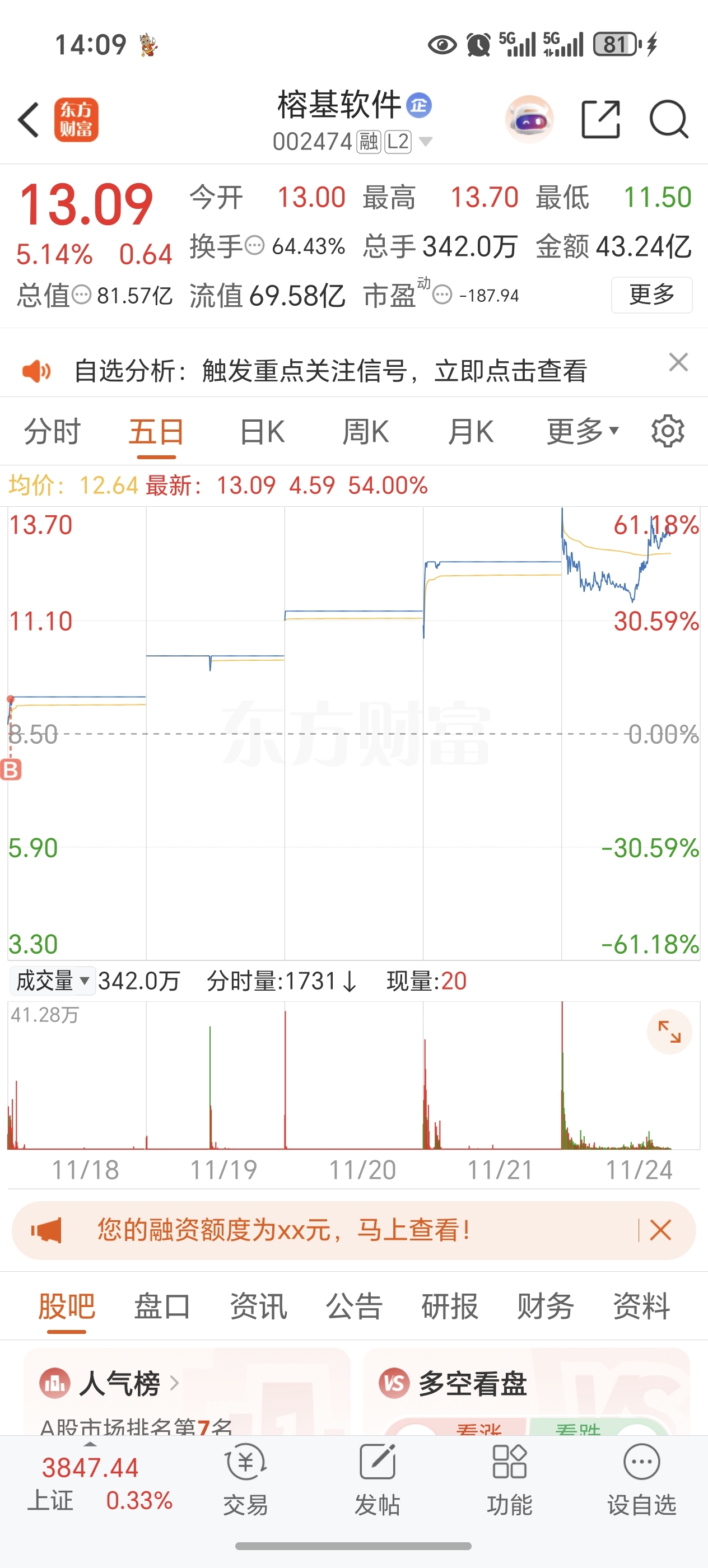 $榕基软件(SZ002474)$ 这么能格局全靠肉垫后,和早上手慢了没跑掉