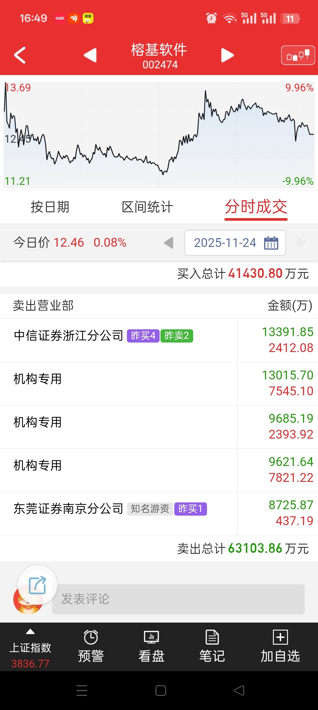 $榕基软件(SZ002474)$ 六一哥,已经不是当年的六一哥了,今天跑了一个多亿,是不是这个席位换人了这么没格局,炒股还是的靠自己,不能跟随游资啊