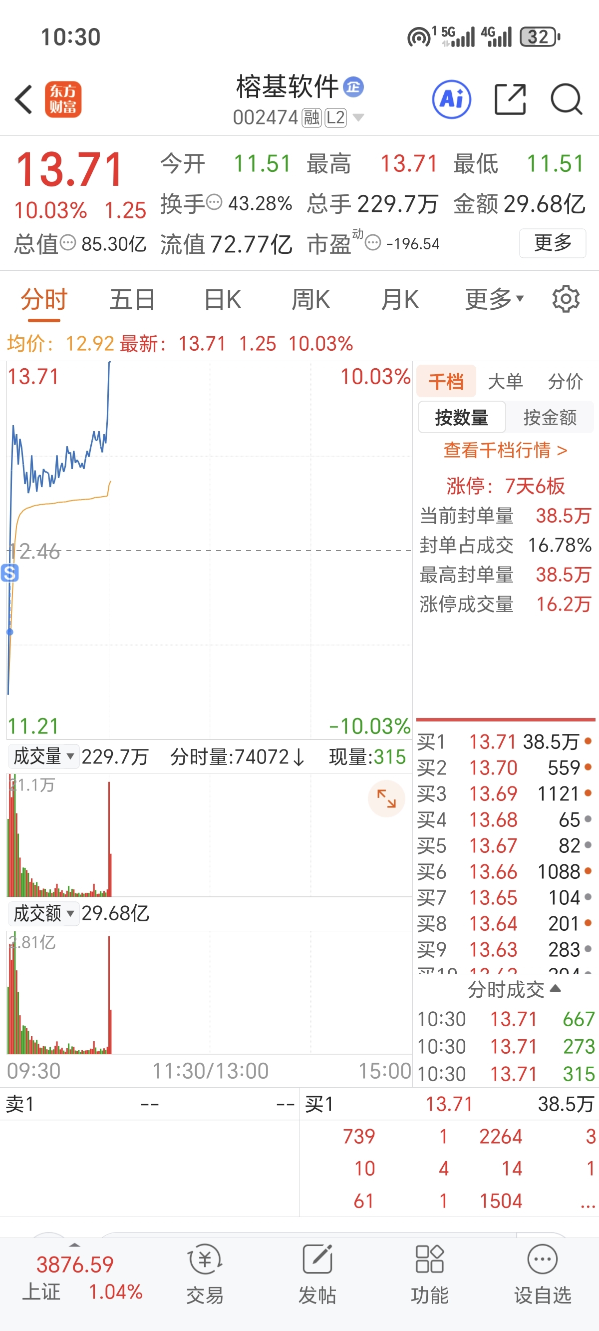 $榕基软件(SZ002474)$ 真恶心这货,早上开这么低我以为要直接往地板去了,没想到涨停了,吐了