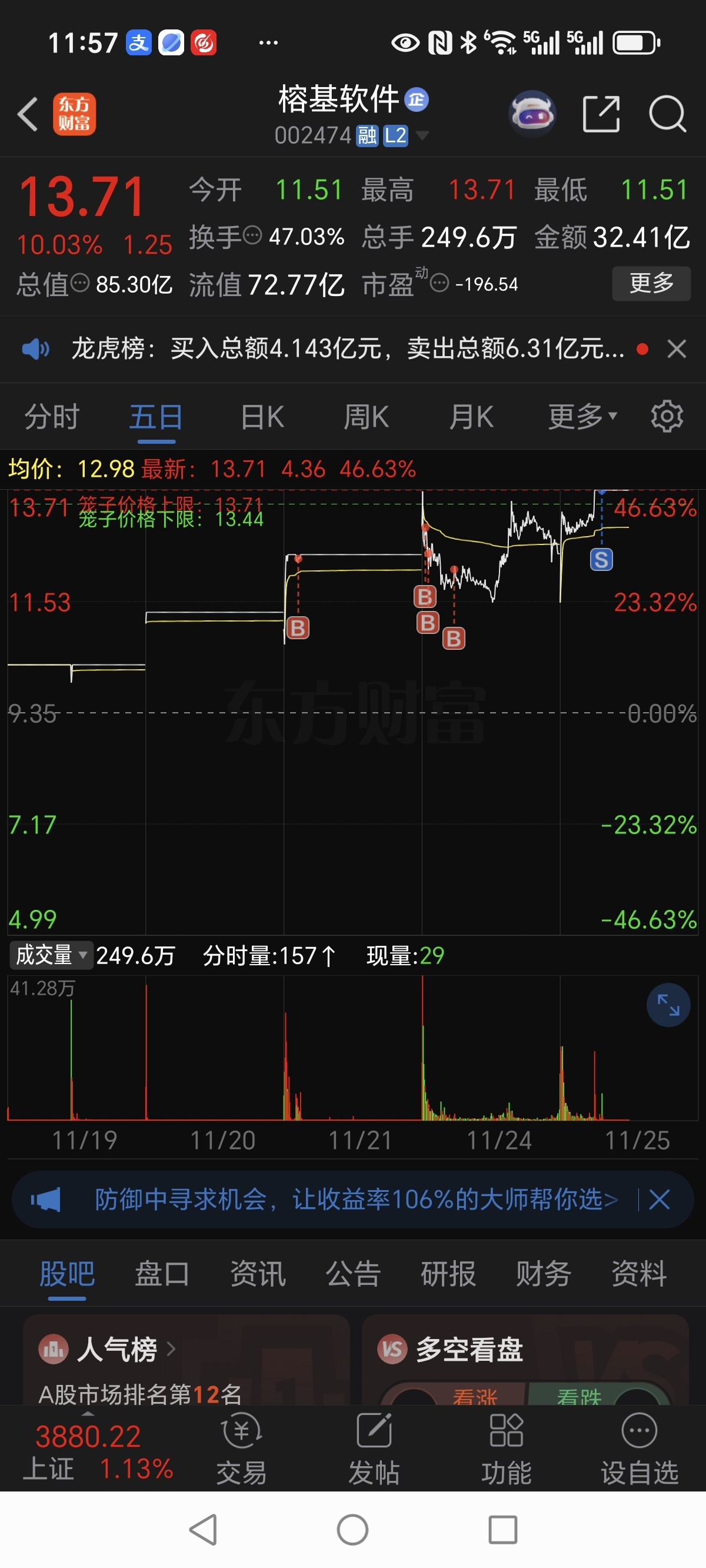 $榕基软件(SZ002474)$ 我被忽悠下车了,才一个板