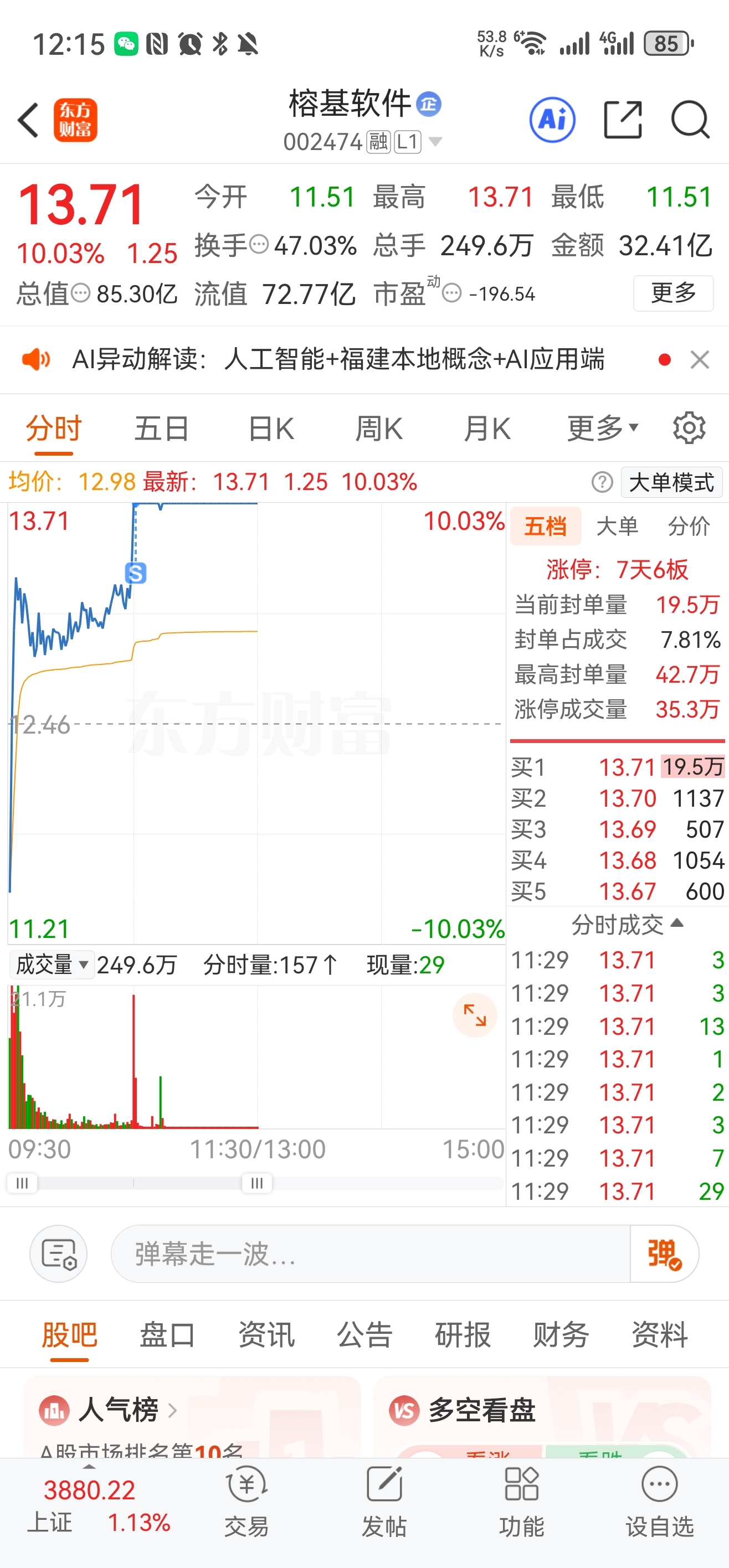 $榕基软件(SZ002474)$ 兄弟们,虽然我很看好这个票,但是已经高位了,不喜欢吃鱼尾吧
