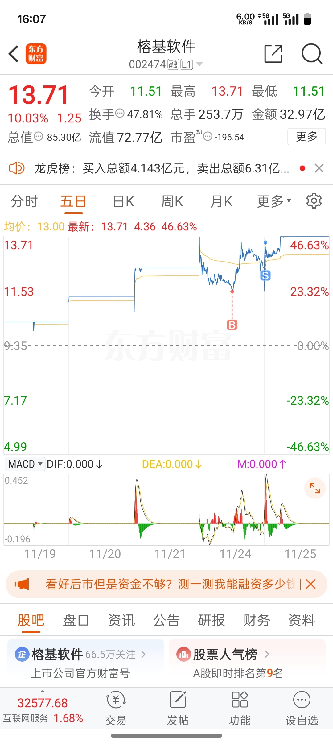 $榕基软件(SZ002474)$ 走了,兄弟们吃肉