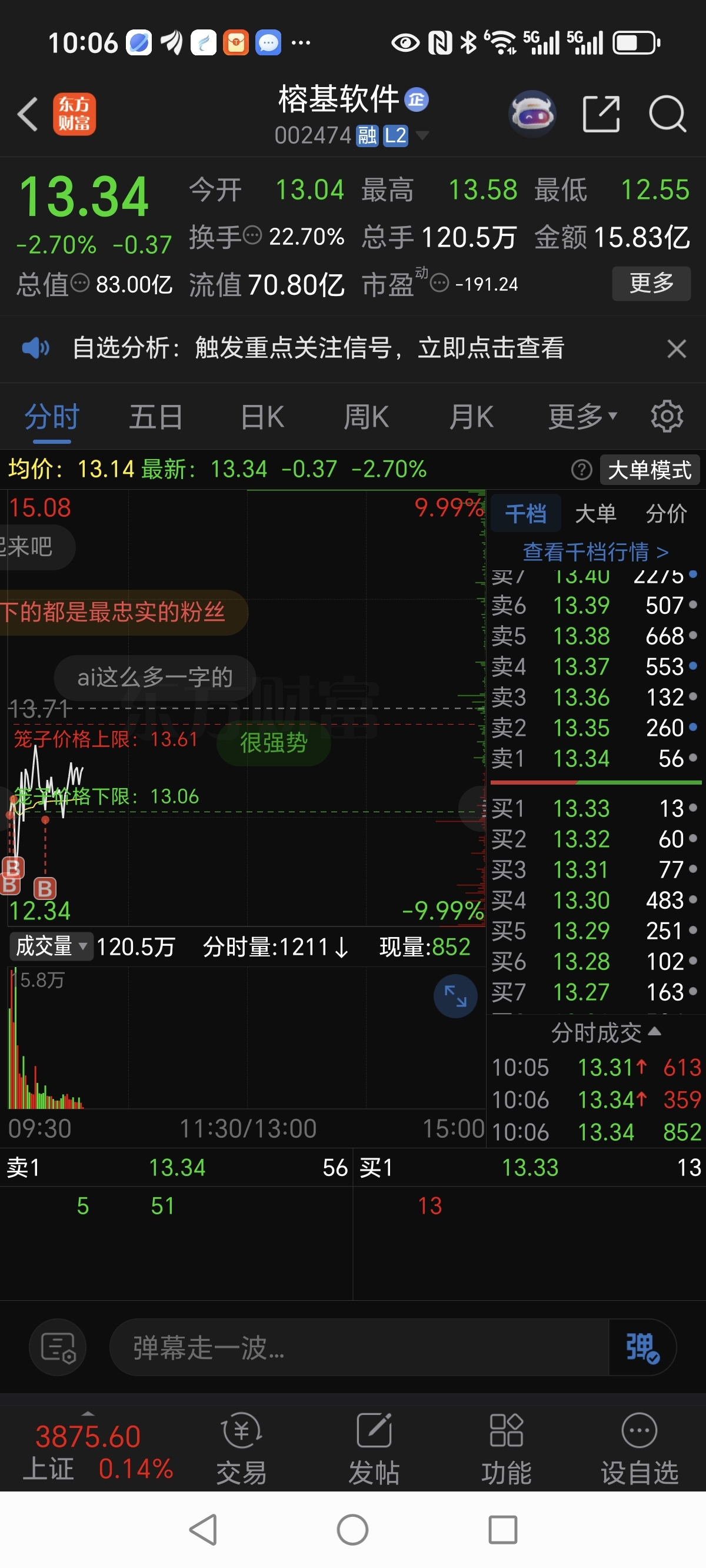 $榕基软件(SZ002474)$ 昨天走了,今天我又来了,幸不辱命买到了#炒股日记#