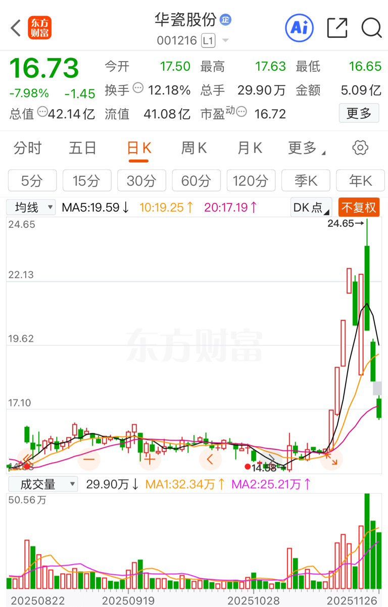 $榕基软件(SZ002474)$ 参考华瓷股份,今天应该是低开秒跌停
