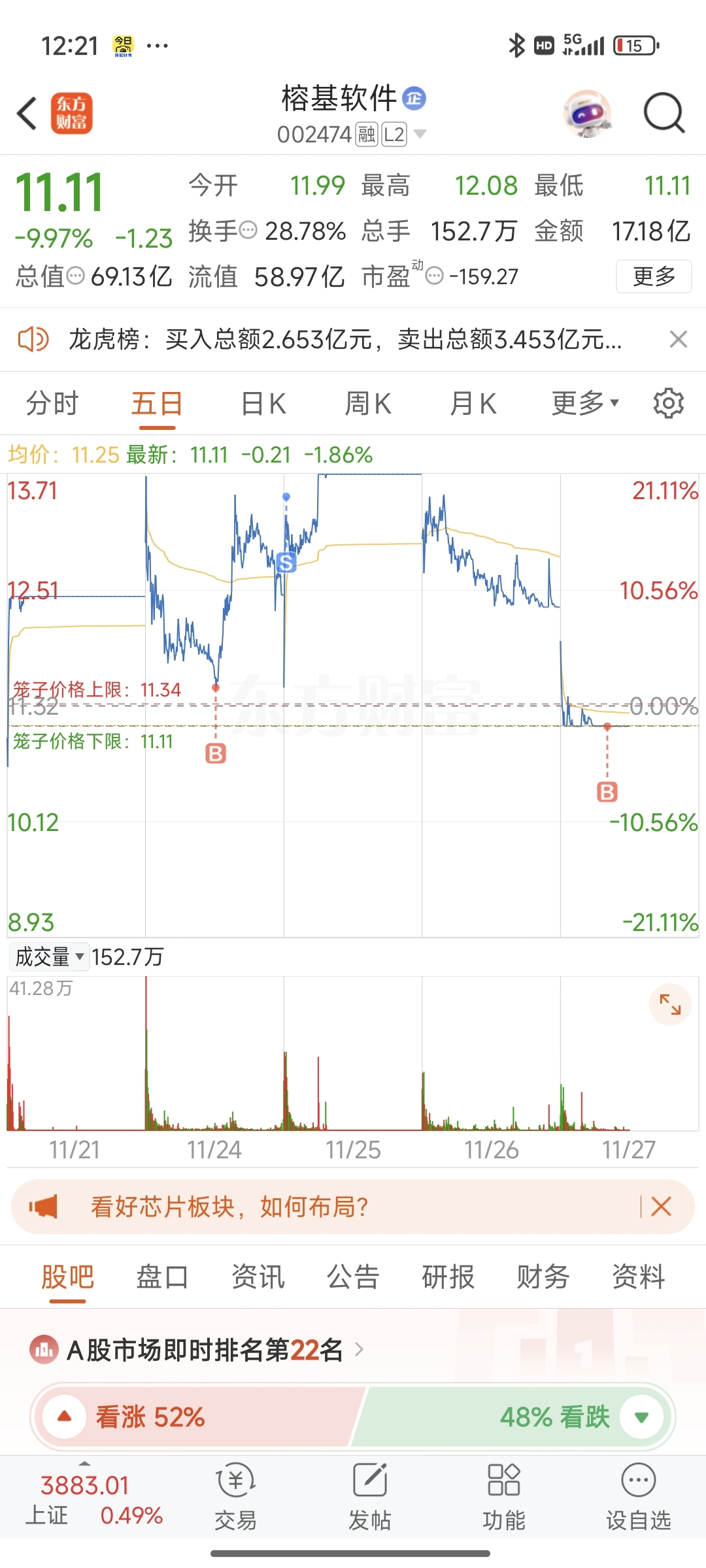 $榕基软件(SZ002474)$ 我的买点跟卖点就是这么奇怪,今天榕基只要撬板往上冲,然后回落,这个票基本上还可以冲新高还有明天低开下砸,然后往上冲红盘就可以跑了,基本上就这两个逻辑