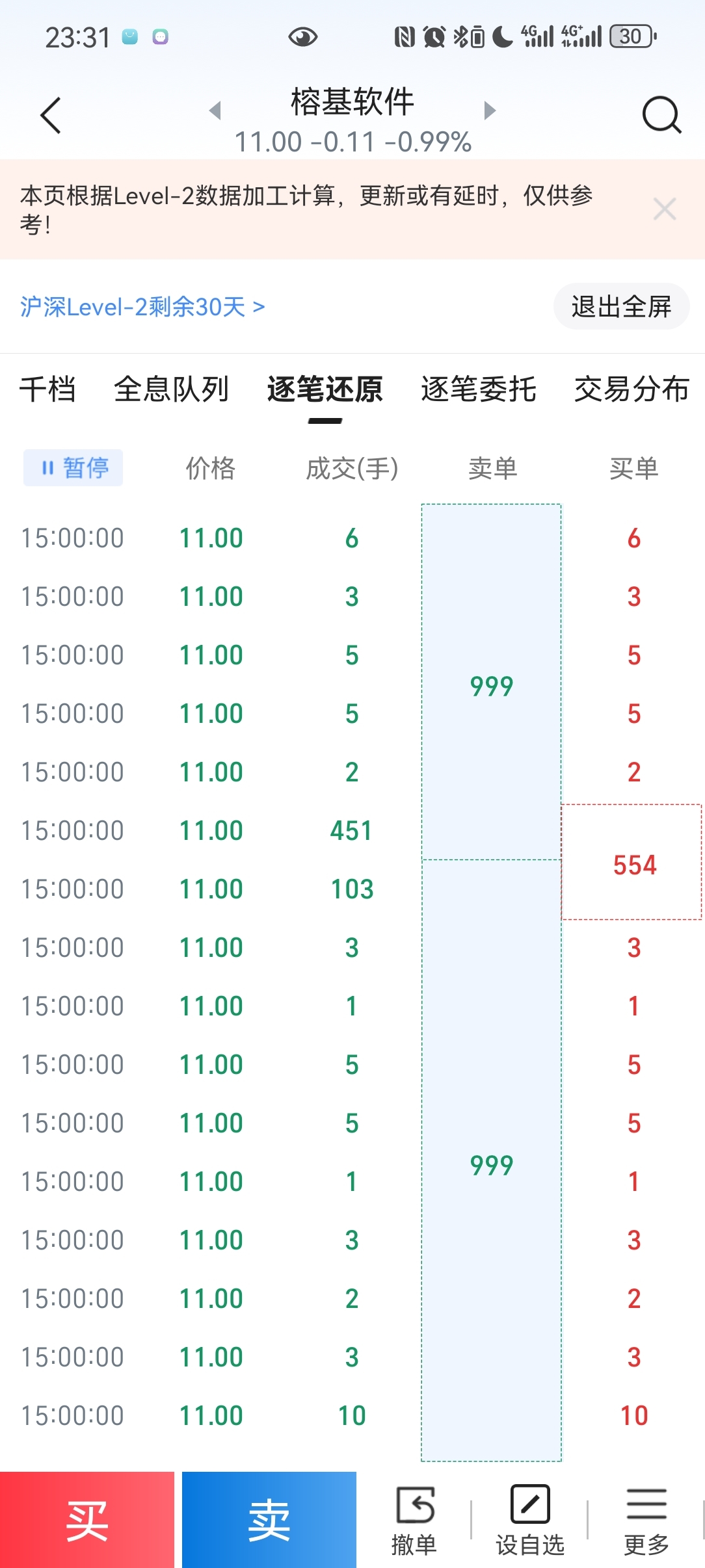 尾盘这里连着8个1193和5个999明显是机构砸的,人手操作不可能那么快。