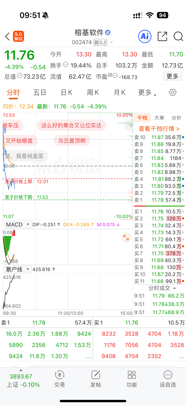 谁啊开盘就砸,挂7个点也挂不出去,涨停前一天买的,才吃了12个点的肉,买了后立马