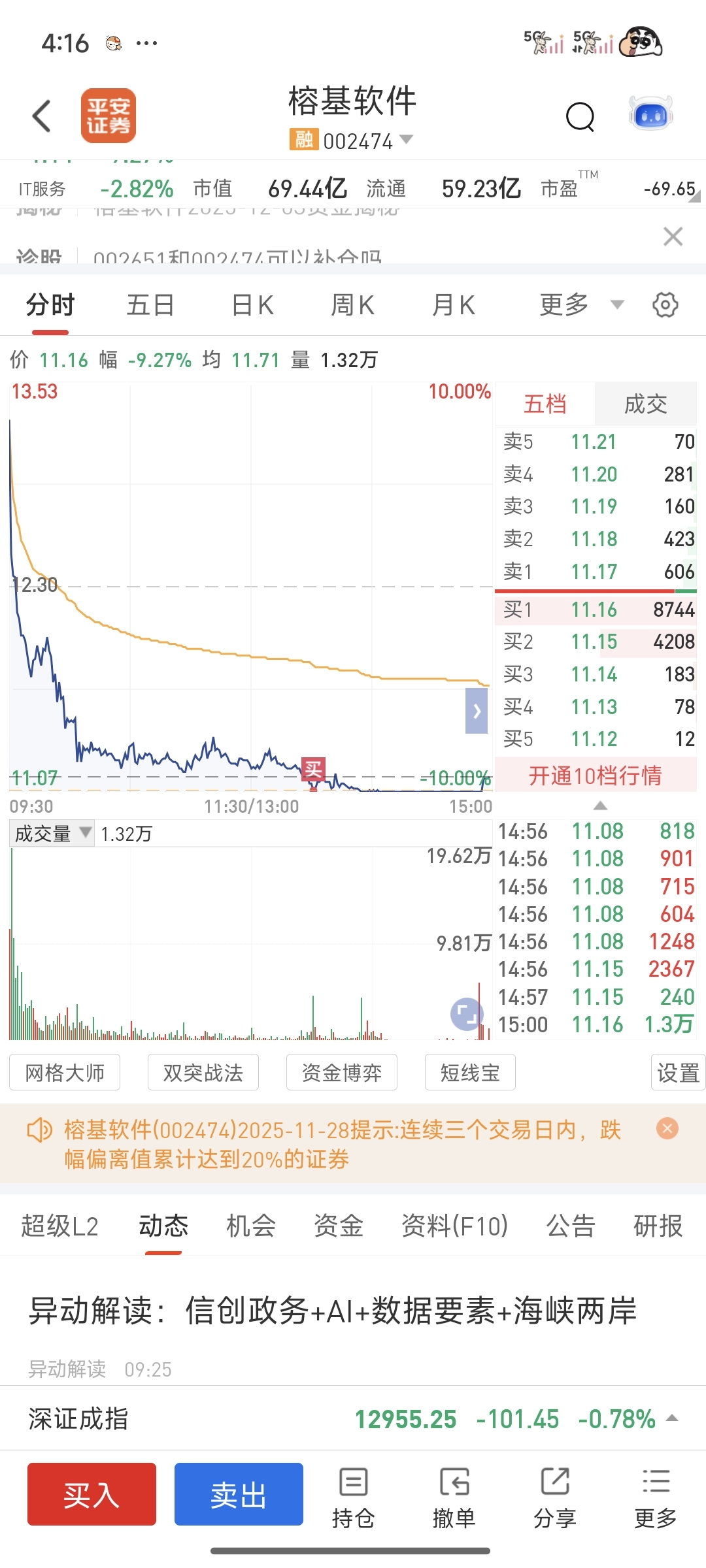 $榕基软件(SZ002474)$ 脑子一热,抽风又买了,明天我是不是死定