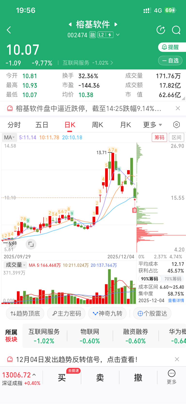 $榕基软件(SZ002474)$ 急跌慌什么?!牢紫最怕的就是每天3-5个点日线缓慢向下的阴跌。急跌的必须引起我的关注啊!今日尾盘入场3成仓位,明天要低开下杀就把仓位打到6成。