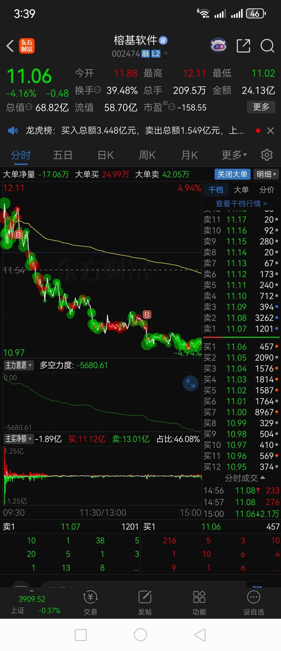 $榕基软件(SZ002474)$ 15:00出2.1万,啥情况自己想