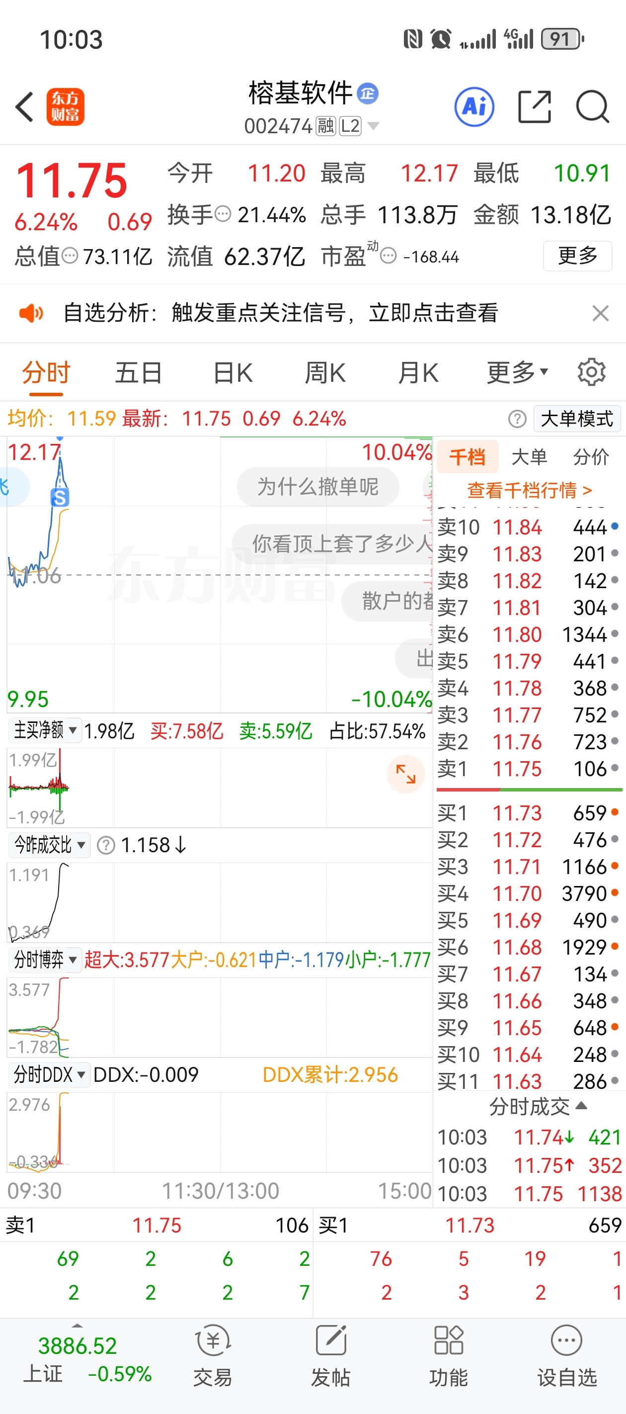 $榕基软件(SZ002474)$ 又把我挂山顶了