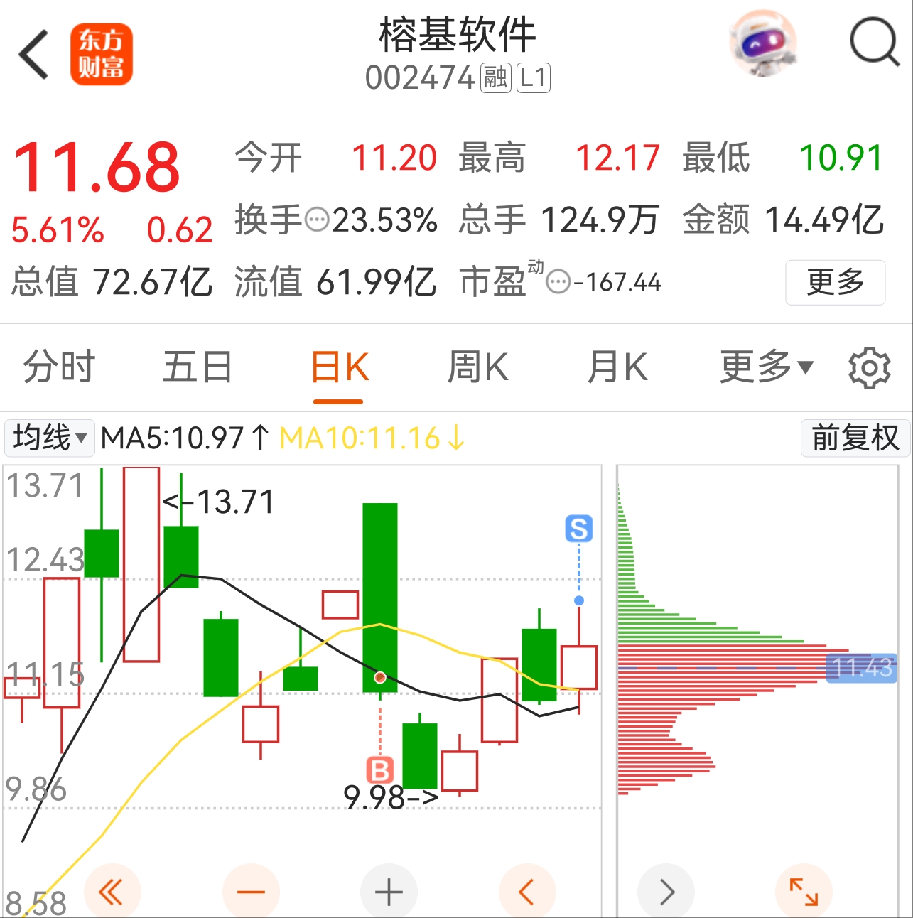 $榕基软件(SZ002474)$ 再见,昨天优柔寡断,今天涨停没封住立即出