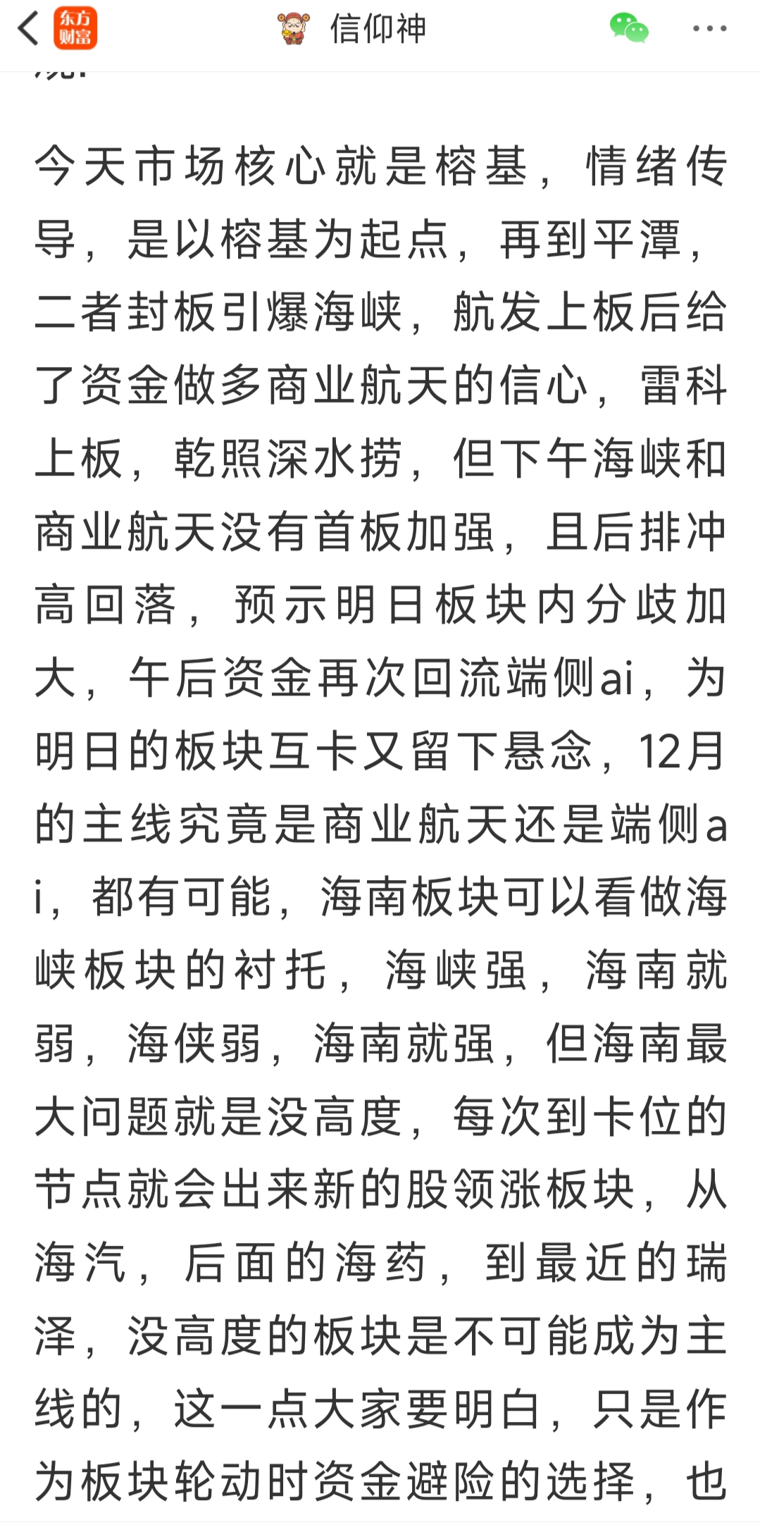 还记得神2号发的超短大局观么,今天就应该冲高走的,且海峡板块就不该开仓了,尤其是