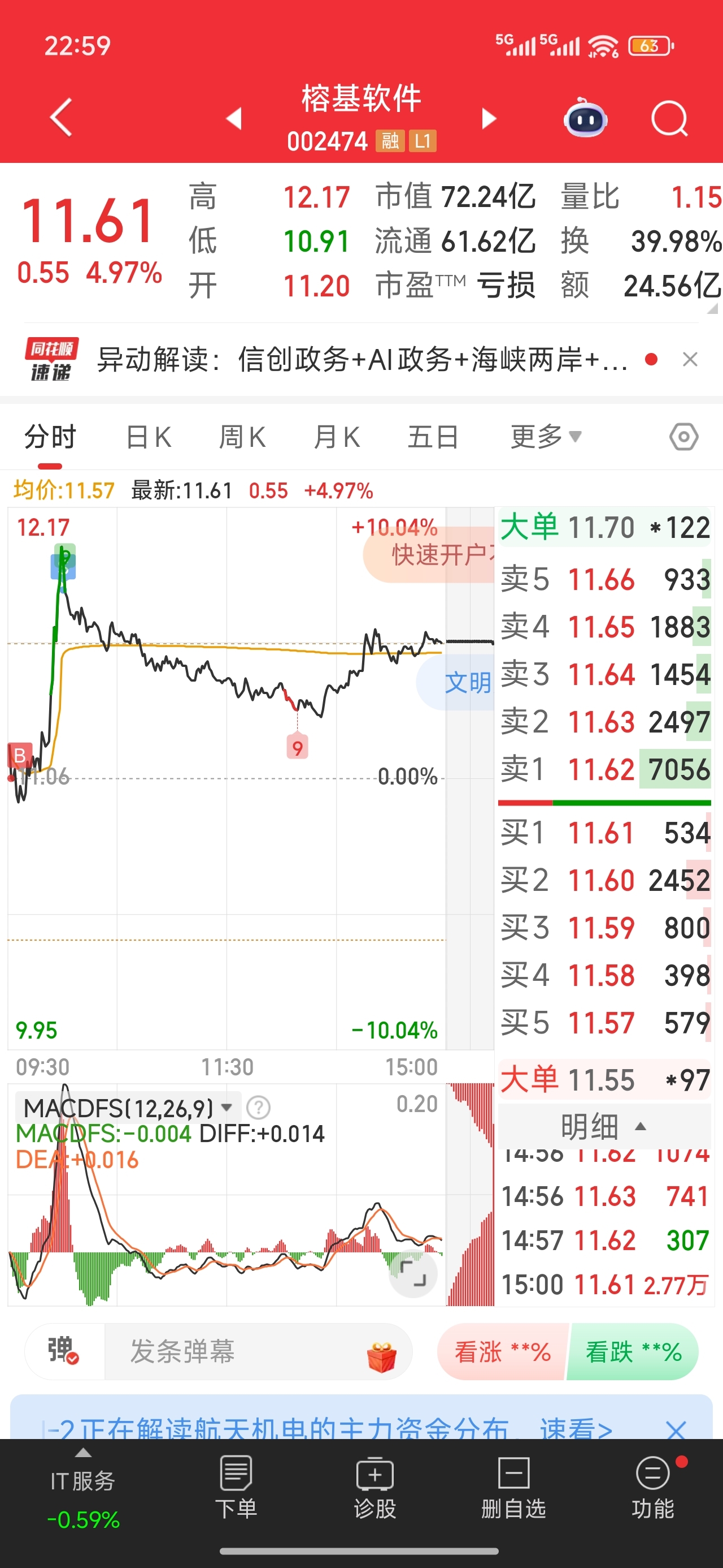 $榕基软件(SZ002474)$ 早晨帖子说了,虽然昨天全天下杀,但是趋势没有坏,而且机构做了一个对倒,虽然出去了一部分,但是又进来一部分,所以今天看高一线,果然,不出意外没出意外,今天龙虎榜,机构继续做T,明天拉高就全出了,不再做T了,祝大家安好!#社区牛人计划# #复盘记录# #实盘记录# $步步高(SZ002251)$ $达华智能(SZ002512)$