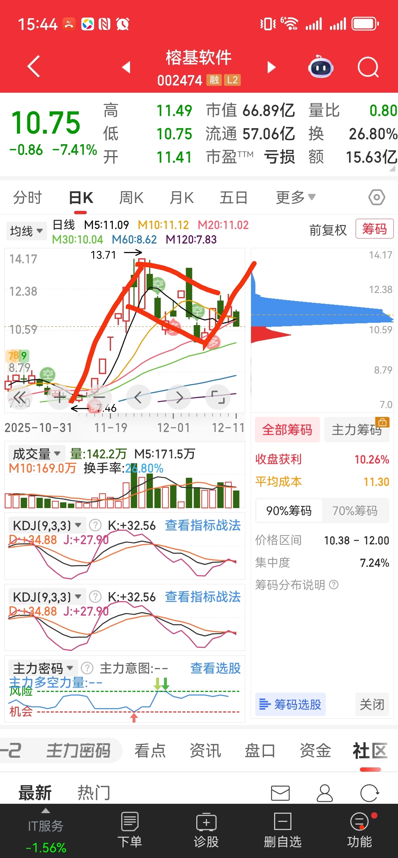 $榕基软件(SZ002474)$ 对是不是啊,走这个形态不啊,观察观察在